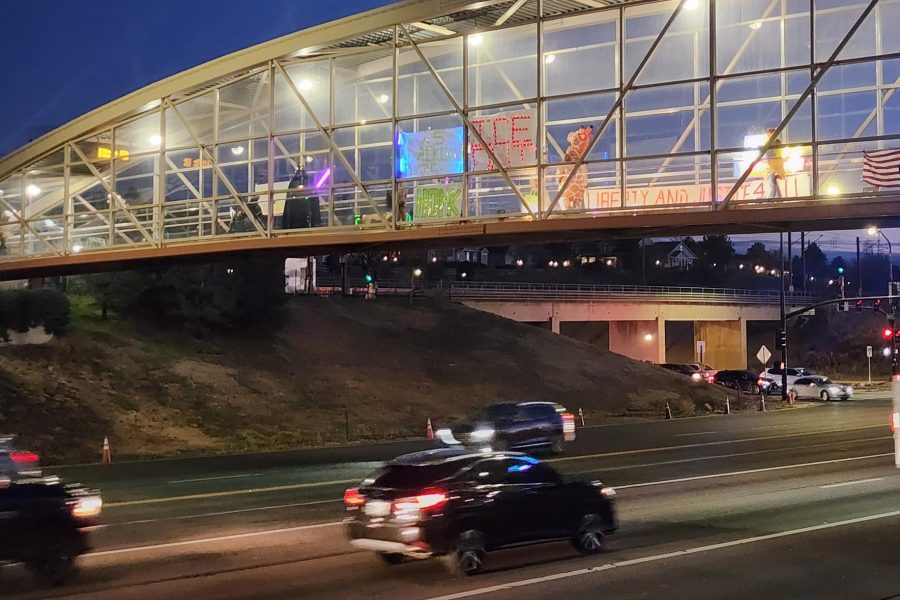 They’re a group of Denver protesters who strap signs that say things like “Fuck ICE” and “Release the Files” to the sides of overpasses above the metro area’s busiest highways, all while pumping up the jam to keep the resistance going.