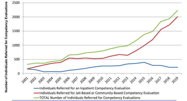 Since 2000, Colorado has seen a 592% increase in court-ordered for competency evaluations, and a 1,251% increase in those referred for services
