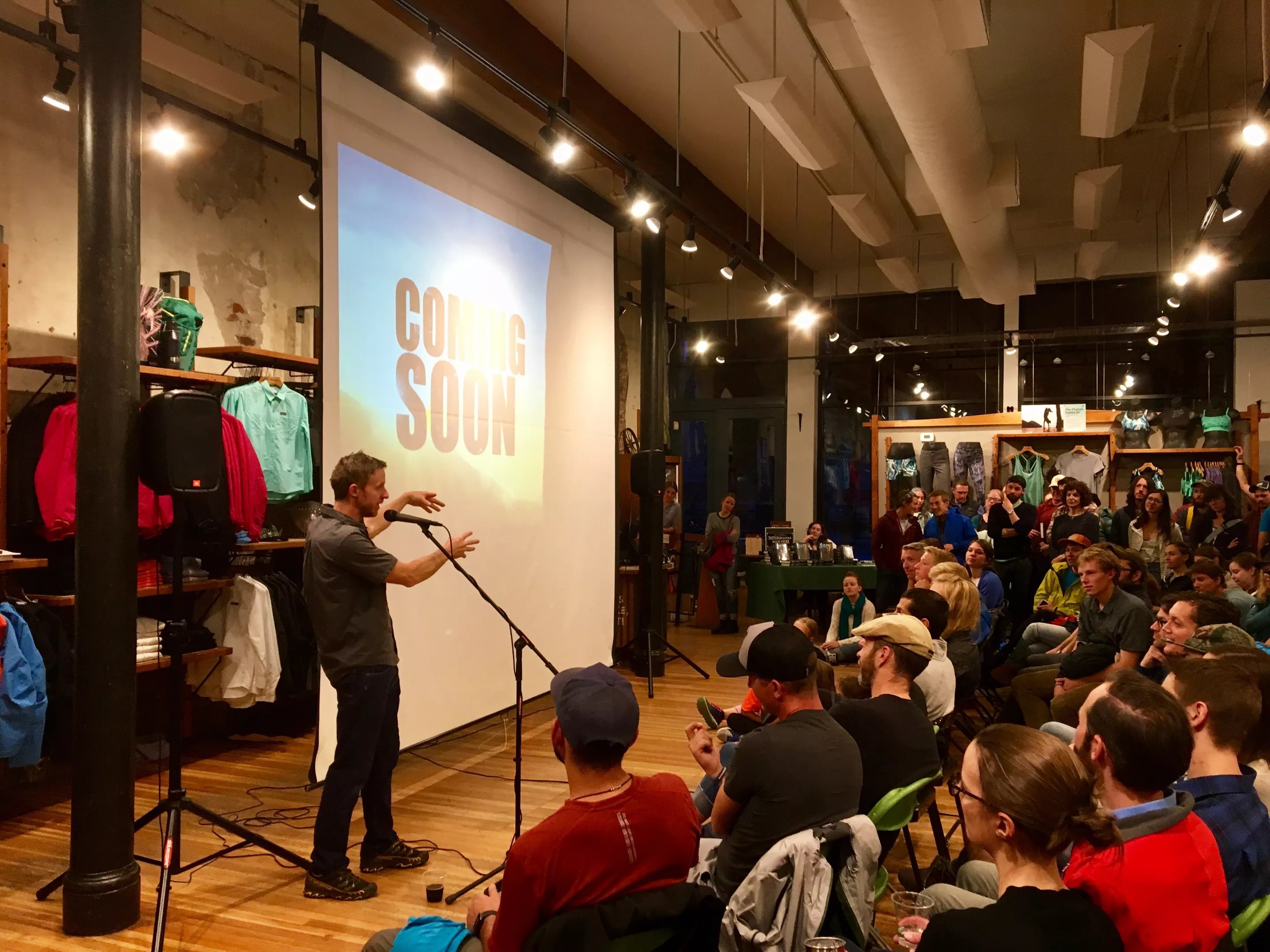 The Push: A Climber’s Journey of Endurance, Risk, and Going Beyond Limits was released on May 16 by Viking Press. Monday’s event at Patagonia in Denver was Caldwell’s second stop on a multi-week book tour. (He’ll be back in Denver at Movement Climbing and Fitness on June 5.)