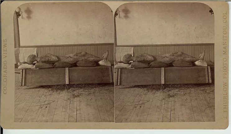 In the 1870s, a group of European swindlers fired uncut African diamonds into the ground on a remote mountain acre near Middle Park, taking samples to San Francisco to get them “appraised.” Soon they had half a dozen eager investors in their “diamond field,” and a stock company was formed after a representative followed the fake miner back to his Colorado field, where diamonds were winking out of the dirt. “Gathering in something like $800,000 and one-fourth of the stock, which they afterwards disposed of in New York, the sharpers skipped,” a newspaper reported. One conspirator was later arrested but released for lack of evidence. It took a geologist conducting a survey, Clarence King, to expose the “diamond farm” hoax; it’s commemorated by Diamond Peak in Moffat County. The Solid Muldoon. Denver Public Library