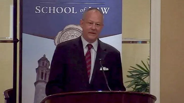 A screen capture of Timothy Tymkovich during a 2014 speech.