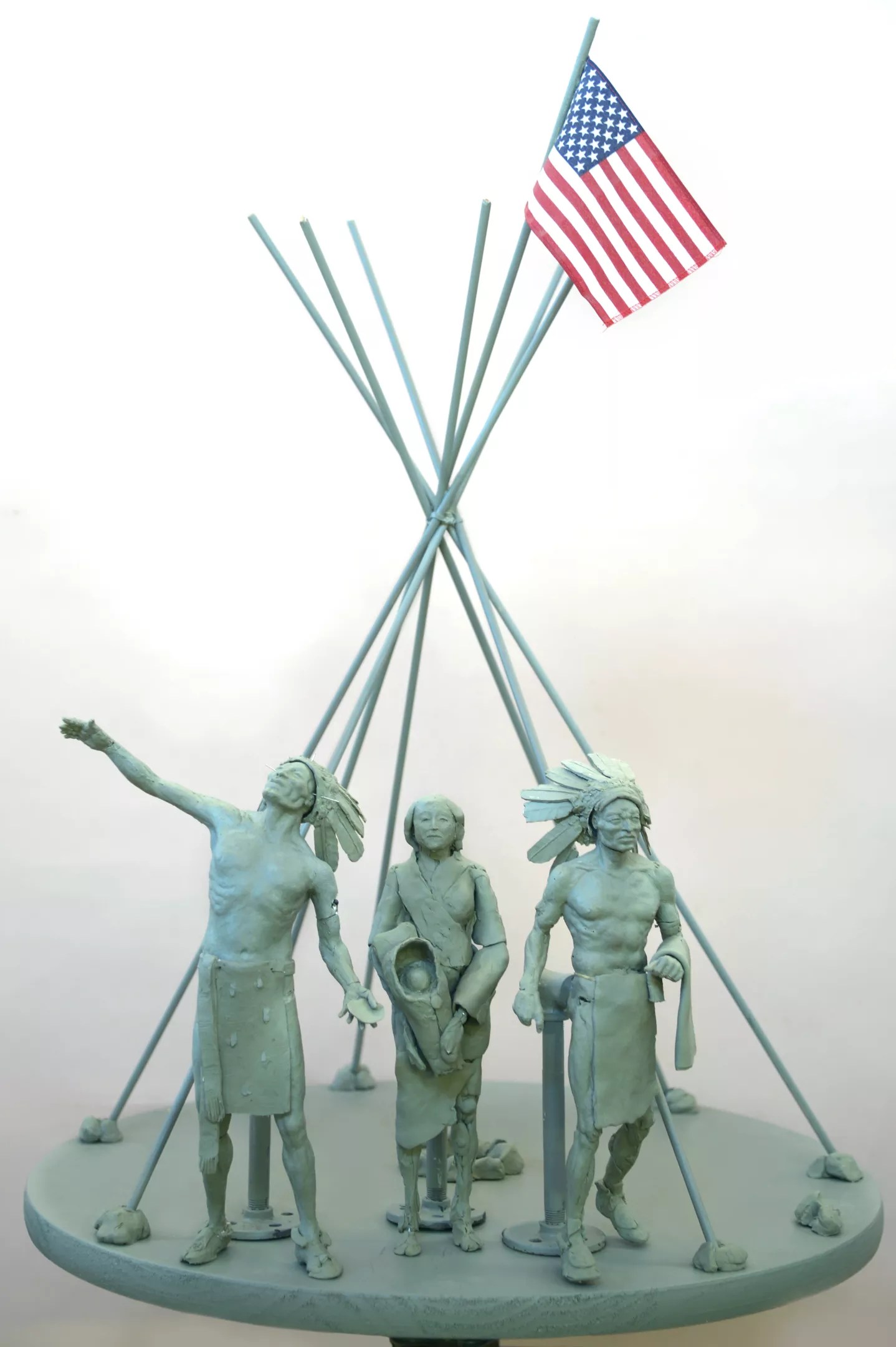 The installation by Gerald Anthony Shippen will have Cheyenne chief Black Kettle and Arapaho chief Left Hand Arapaho flanking a mother with her child.