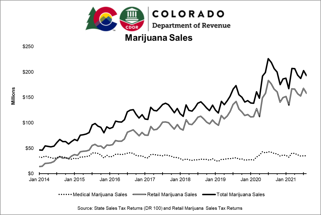 Legal marijuana sales and excise taxes have accounted for approximately $290.5 million in tax revenue from the start of 2021 through August, according to the DOR, and have raised almost $1.9 billion in tax revenue since recreational sales began in 2014.