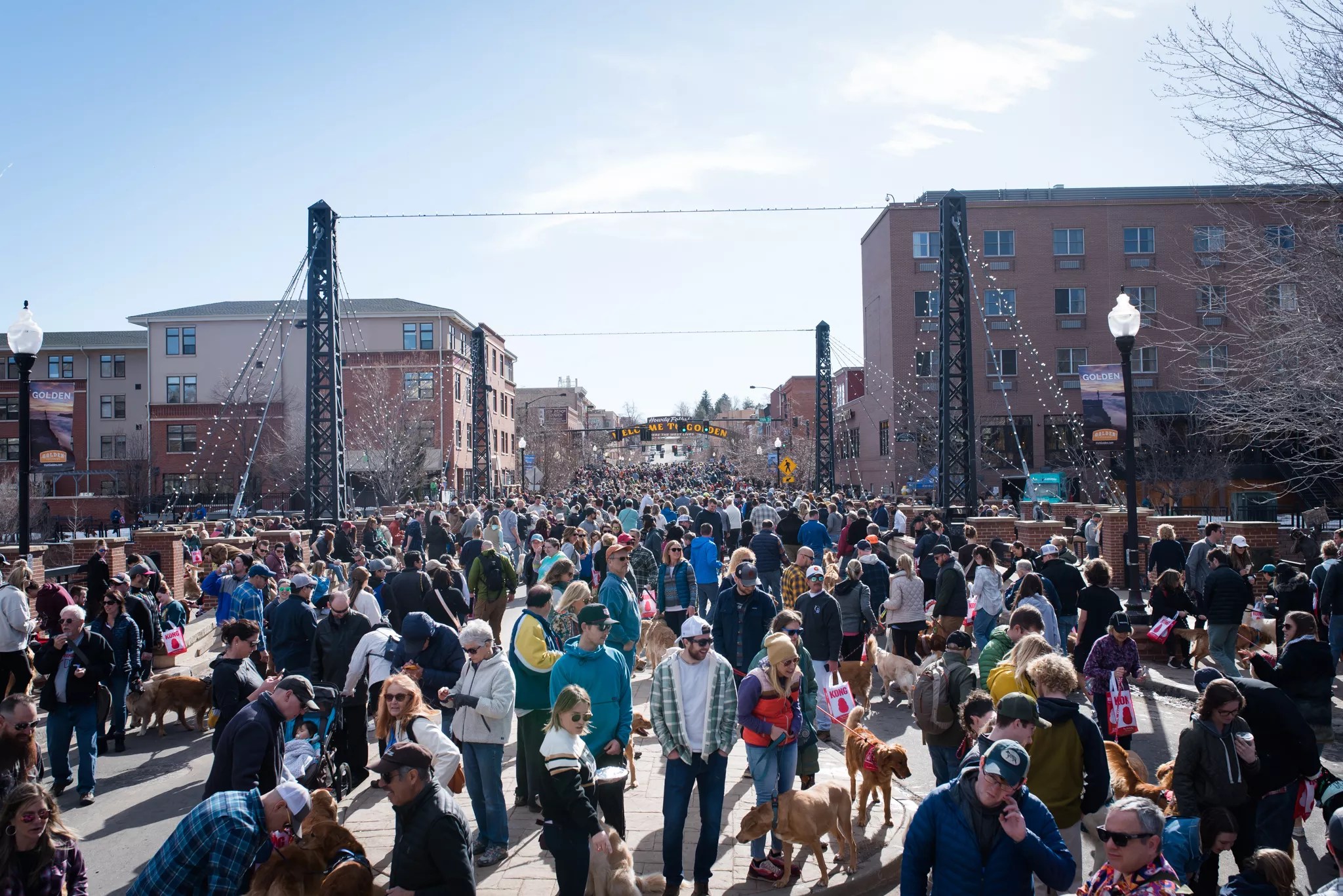 The event was founded in 2019 by Joy Meadows, who has worked with Visit Golden for fifteen years. Meadows says she was inspired by her golden retriever Waffle, who passed away in 2022 but was definitely there in spirit, along with the Meadows family’s newest addition, Sadie. If there were about 3,000 dogs in Golden on February 4, there were at least twice that many humans. Lee Stiffler-Meyer/Let the Light in Studio
