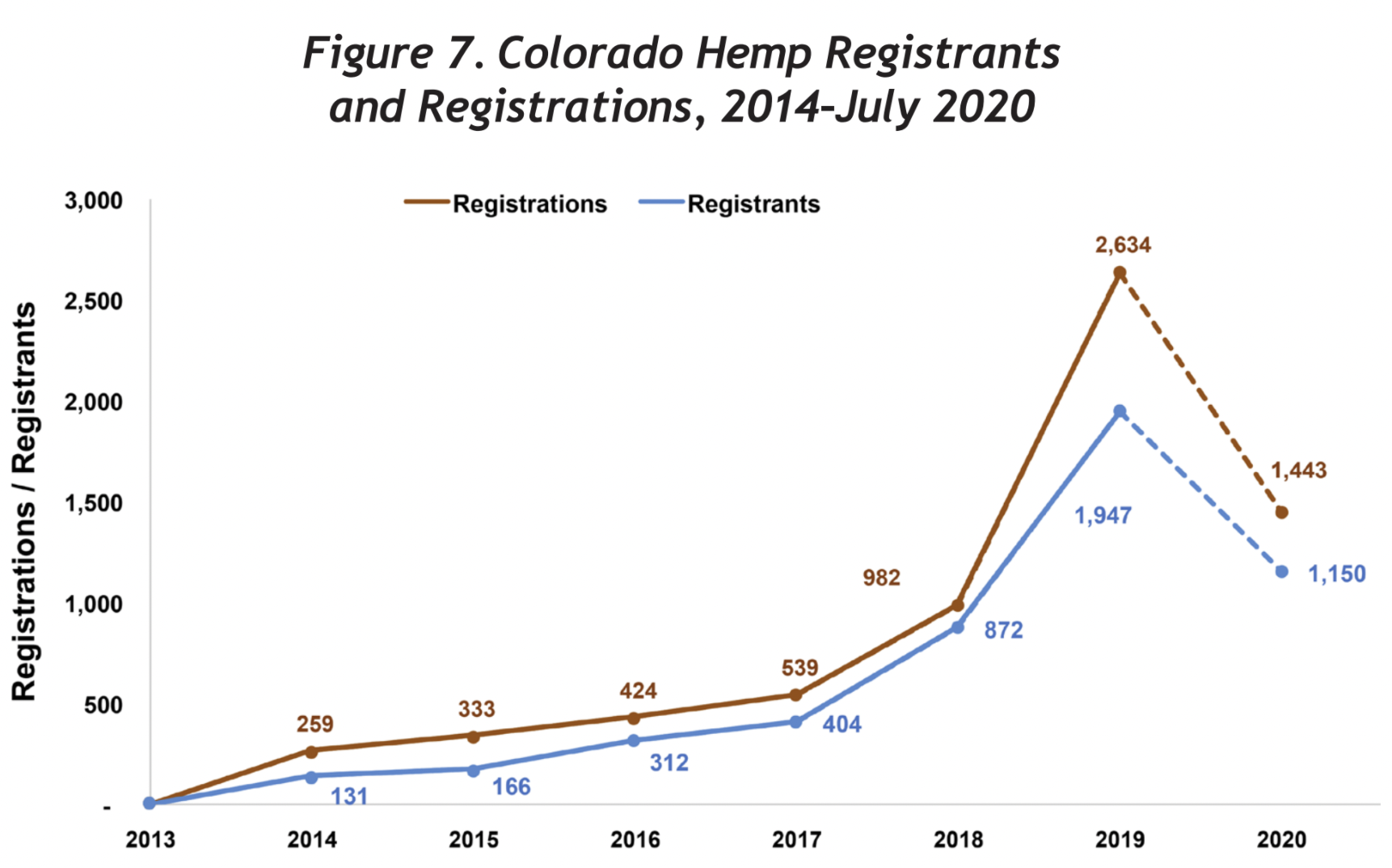Colorado marijuana sales hit record numbers during the COVID-19 pandemic, but the hemp industry lost ground during the same span. According to the CHAMP report, the number of registered hemp farmers in Colorado declined over 40 percent from the end of 2019 to July 2020.