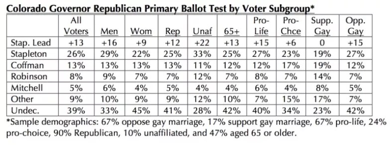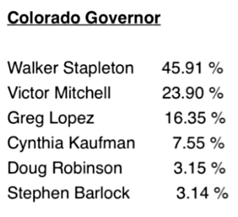 Of course, we don’t know how Stapleton finished in the majority of Colorado counties. But at this point, he appears to be the Republican guv candidate to beat.