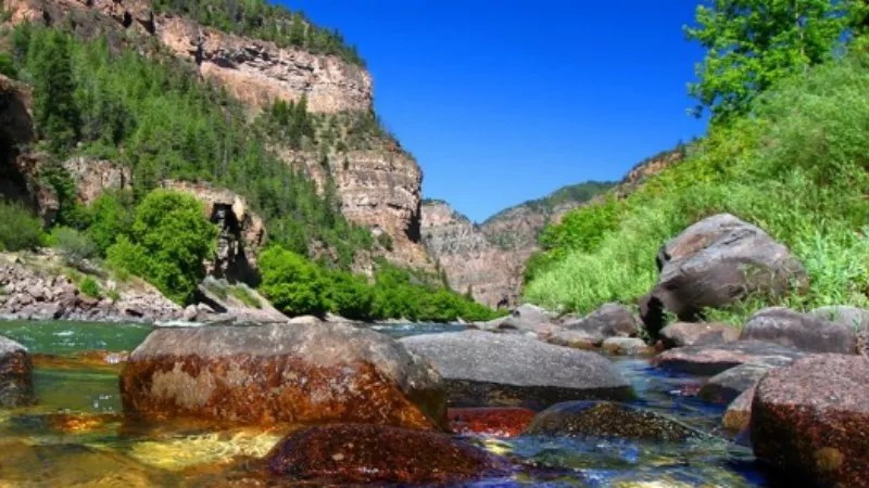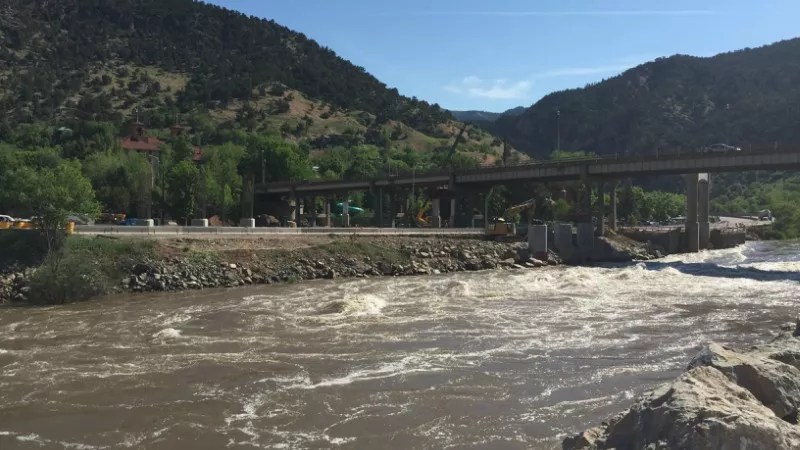 The Colorado River flowing beneath the Glenwood Springs Grand Avenue Bridge.