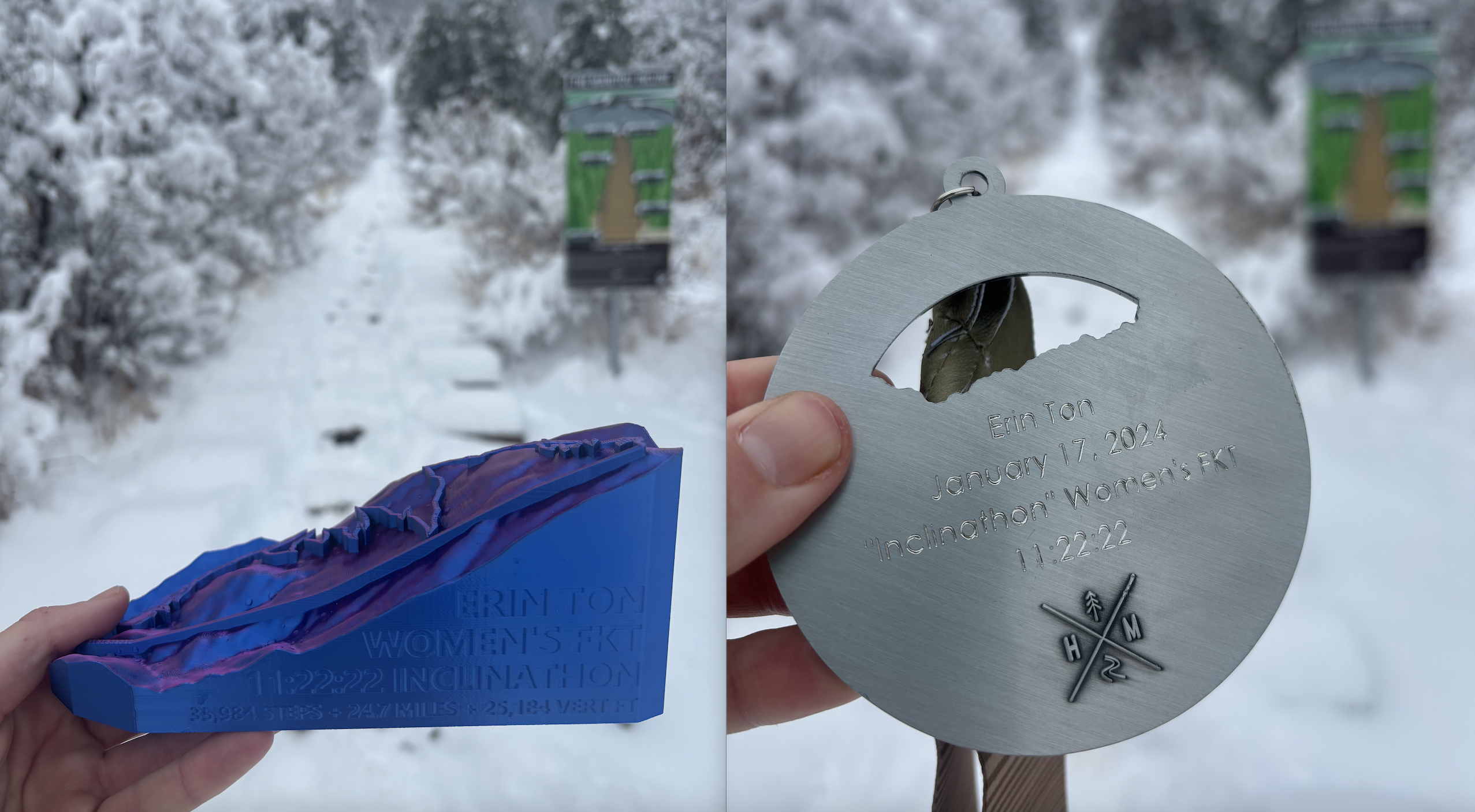 Erin Ton was gifted a medal and a 3D-printed trophy of the Manitou Incline.