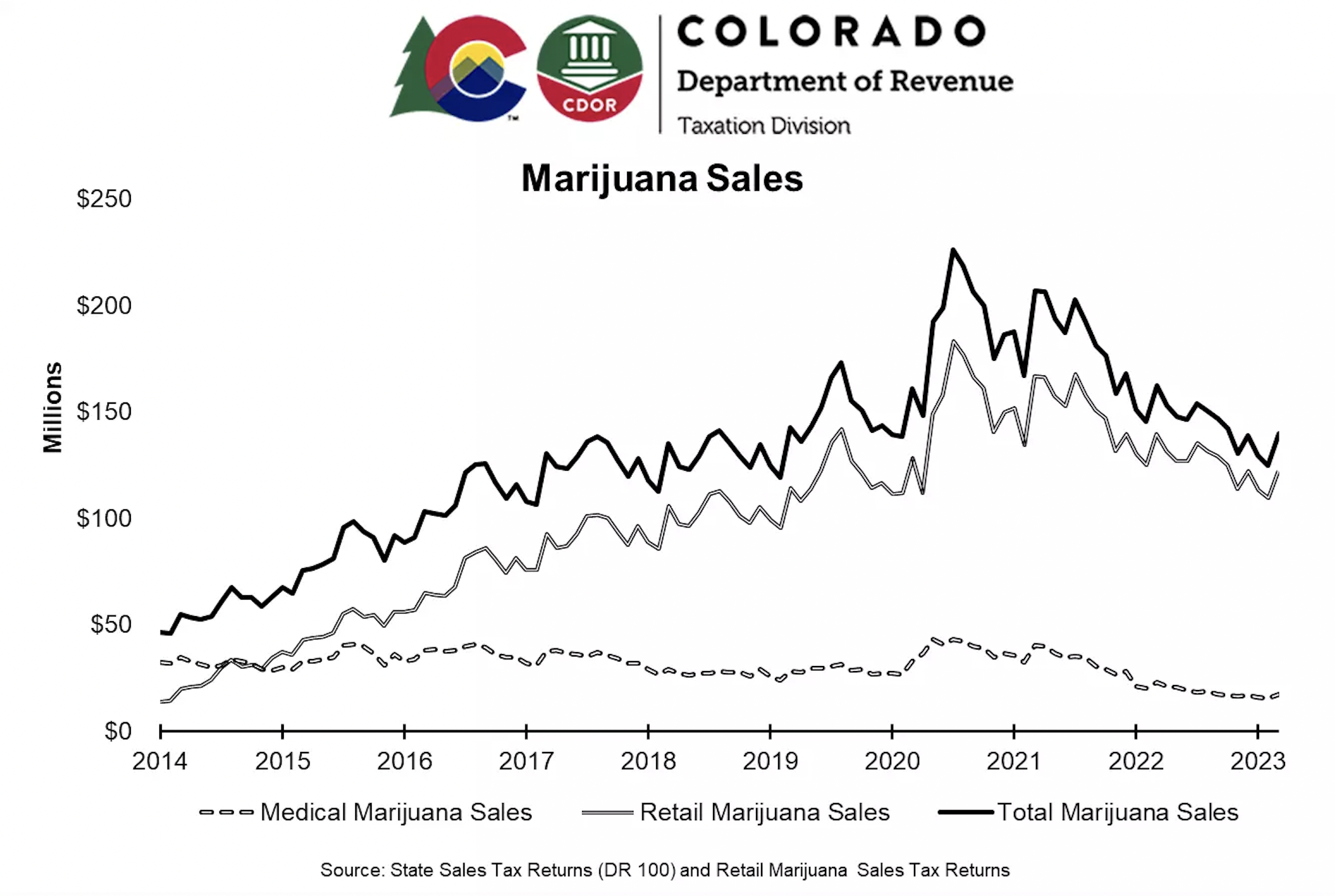 March 2023 marijuana sales, according to the Colorado Department of Revenue