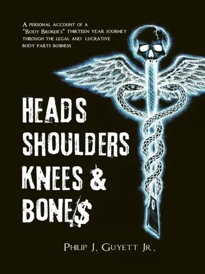 This empire fell apart in March 2009, after Guyett pleaded guilty to mail fraud, with prosecutors saying he’d falsified medical records so that he could harvest human tissue from cadavers and sell it for transplants – though, as you’ll see, his explanation is different. Nonetheless, he was sentenced to eight years in prison, and his time in stir gave him plenty of time to write Head, Shoulders, Knees & Bones, a book about his activities.