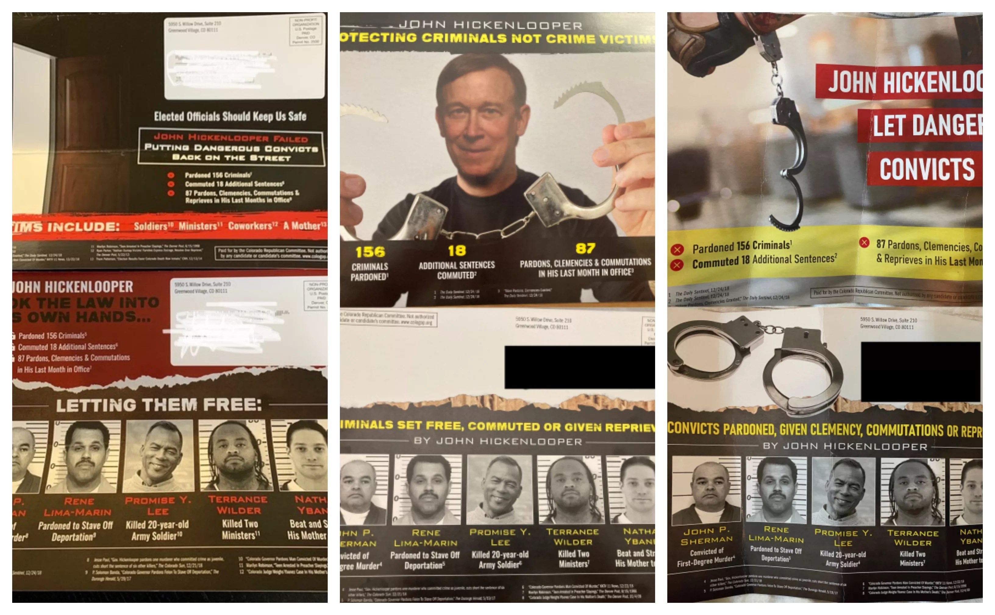 Echoing the infamous Willie Horton ad employed by supporters of George H.W. Bush during his 1988 race for the presidency, the fliers attack Gardner’s opponent, former Governor John Hickenlooper, for pardoning, granting clemency to or commuting the sentences of supposedly dangerous criminals, most of them people of color.
