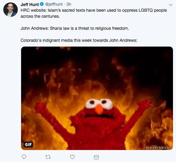 In a statement sent to Westword on July 17, Hunt explains: “John Andrews brought to light the challenges Sharia law has for religious freedom. Any analysis of international religious freedom clearly demonstrates that fact. The question raised by John Andrews and other speakers is the relationship between Islamic religious commitment and Constitutional rights.”