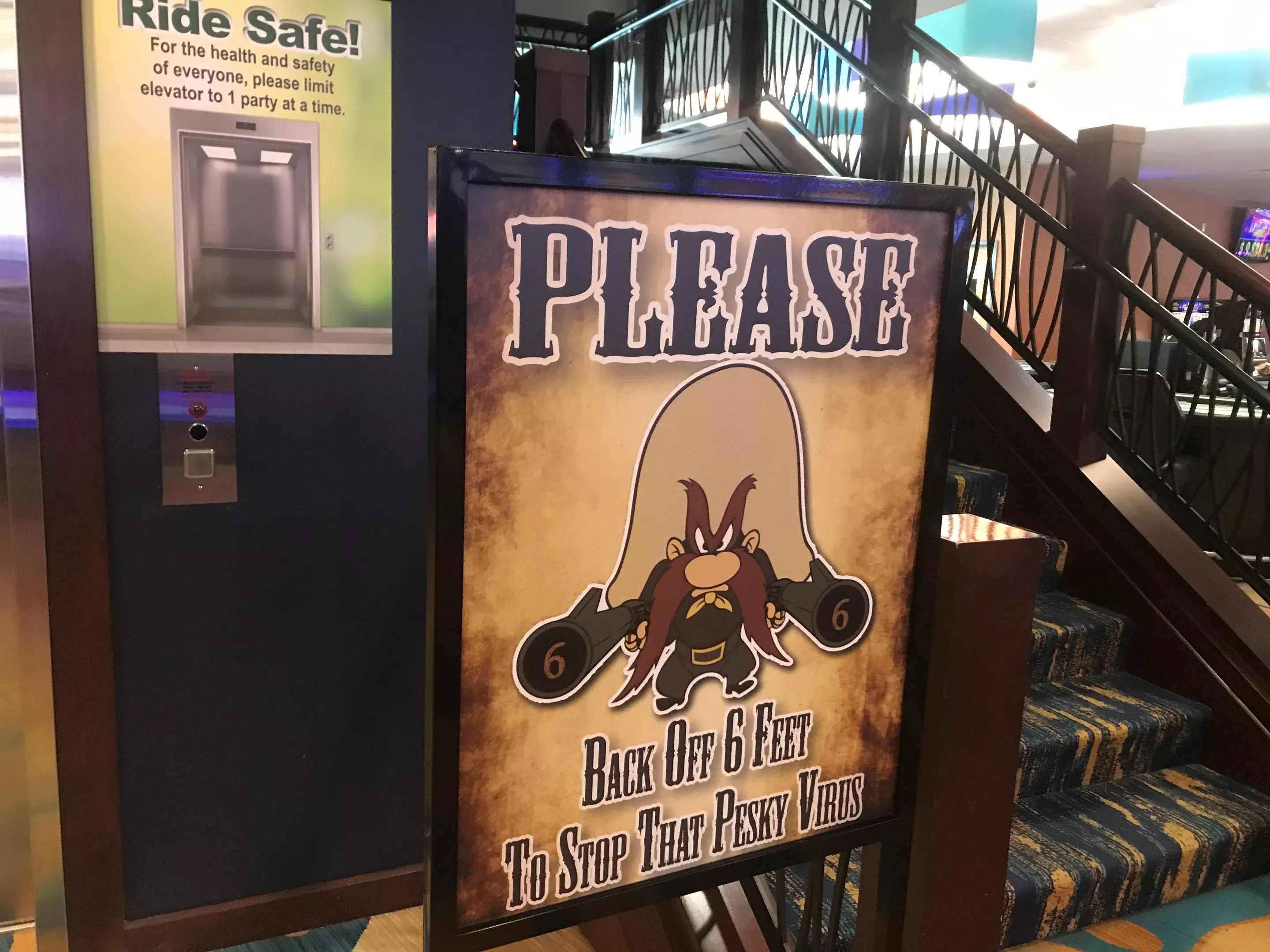 As people passed each other in the walkways between gambling pods, most of them allowed for six feet or more of space between them and others, just as signage featuring Yosemite Sam directed – and the volume of customers made that possible.