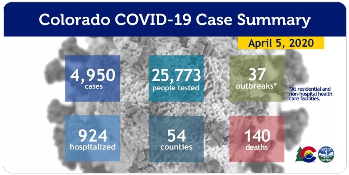 Here are the latest statistics from the Colorado Department of Public Health and Environment, released Sunday afternoon, April 5: