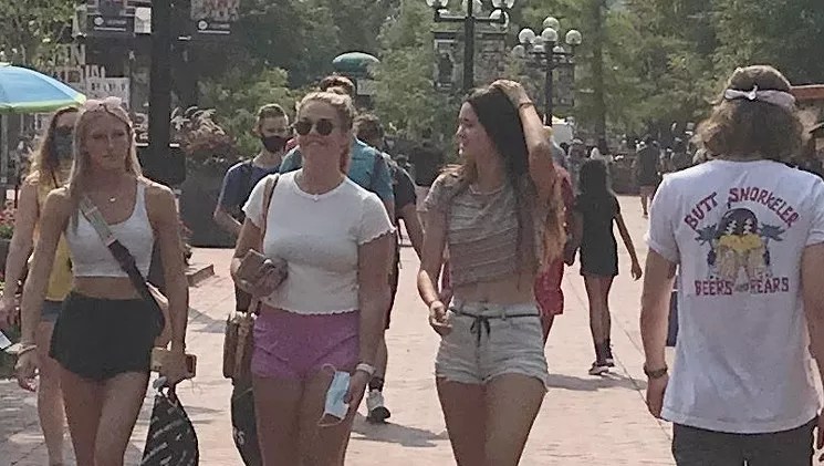 Mask use and social distancing were spotty on the Pearl Street Mall on August 22.