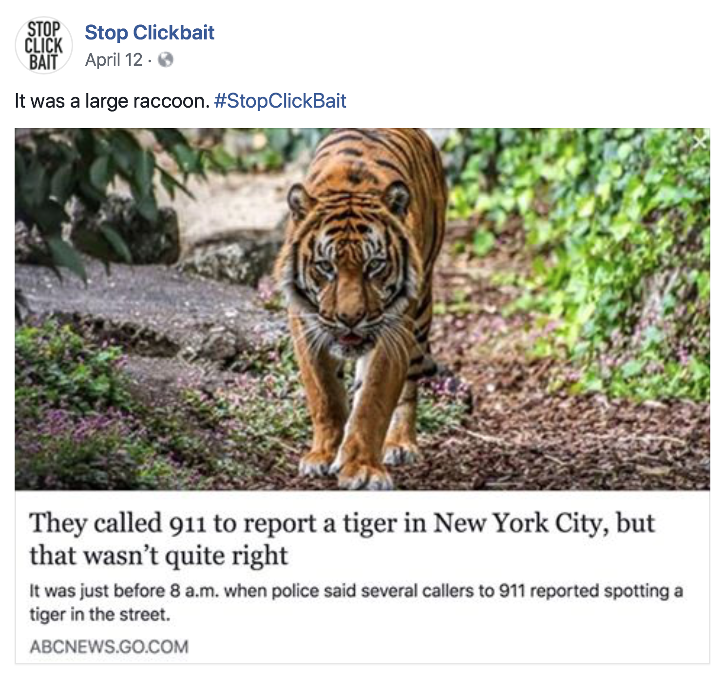 The “tiger” was actually a raccoon. Did ABC News really need to report that?
