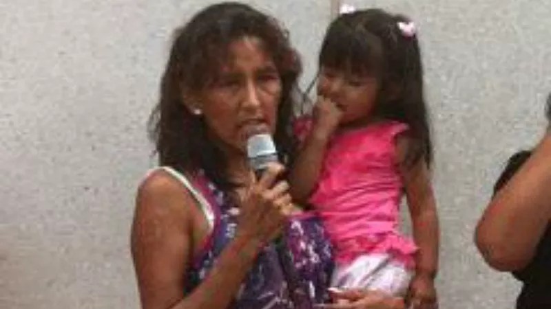 Vizguerra speaking at a 2013 rally while holding one of her children.
