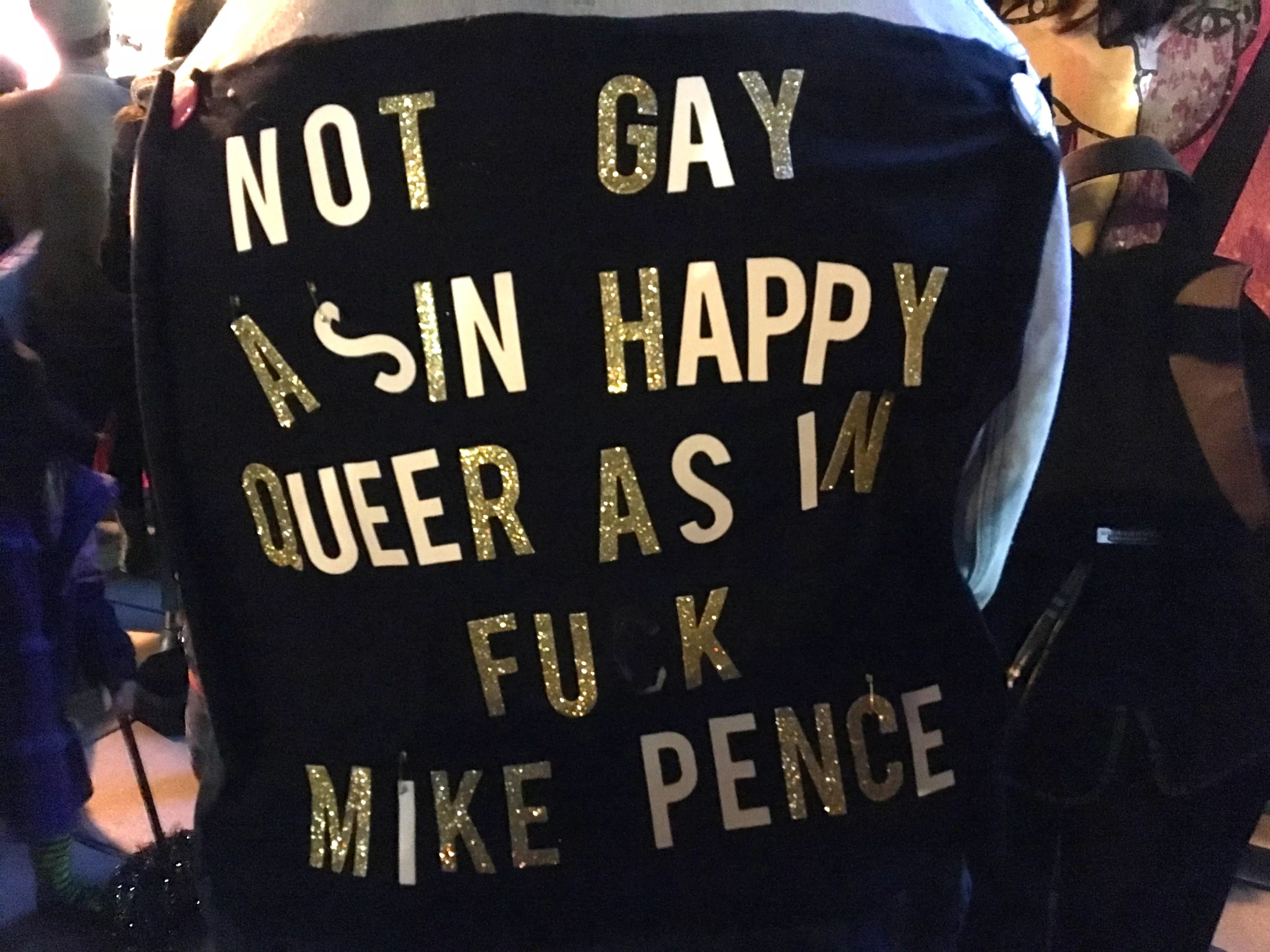 That’s when I decided to roll out myself. But I came away with an alluring tip about an action planned for later in the day: Members of the LGBTQ community and their allies were planning to meet up in the posh enclave of Chevy Chase, north of D.C., and throw a dance party in the street in front of the home of VP-elect Mike Pence (who famously said that gay couples represented a “societal collapse”).