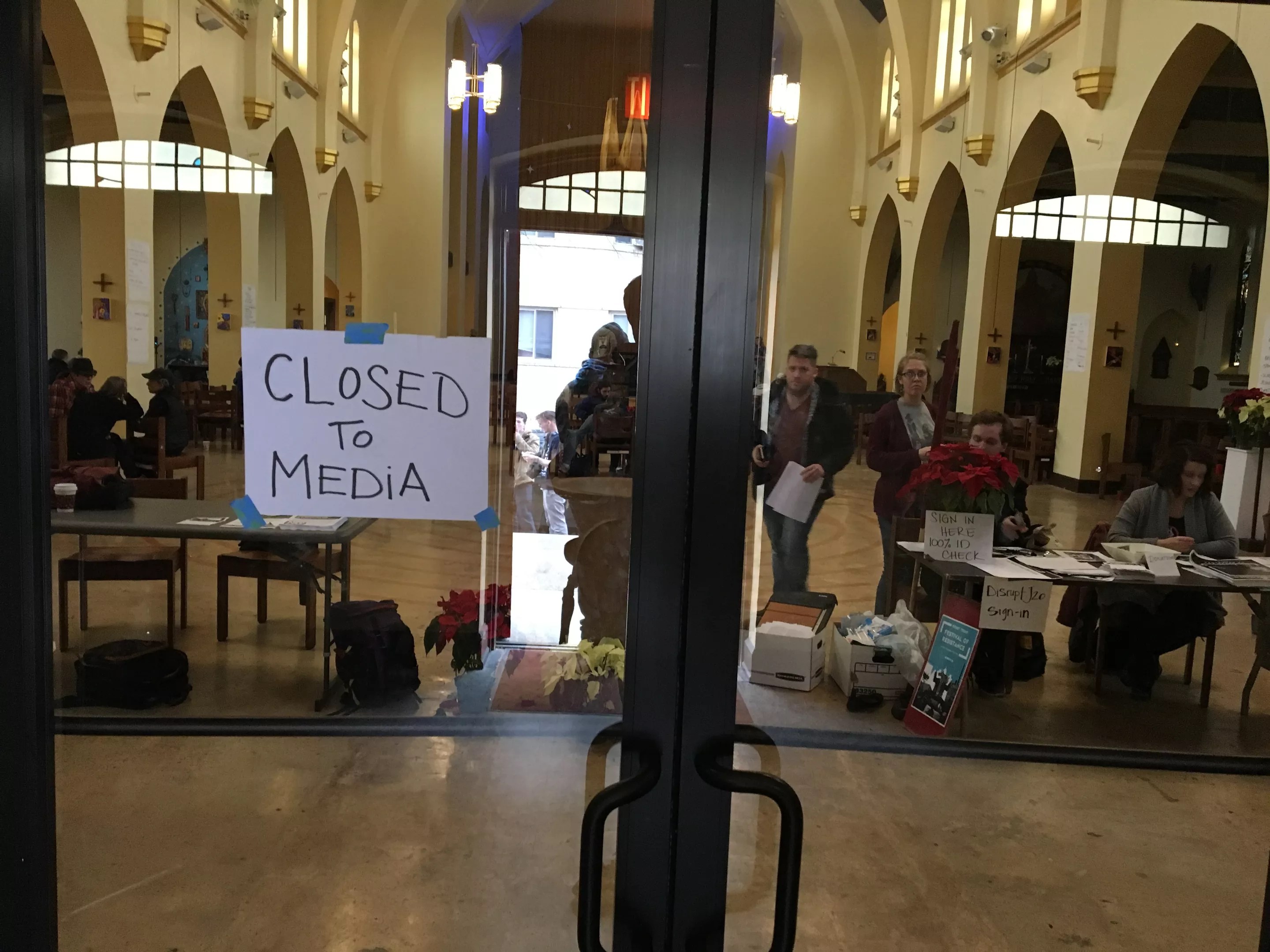 When I reached the front door, I saw the sign: “CLOSED TO MEDIA.”