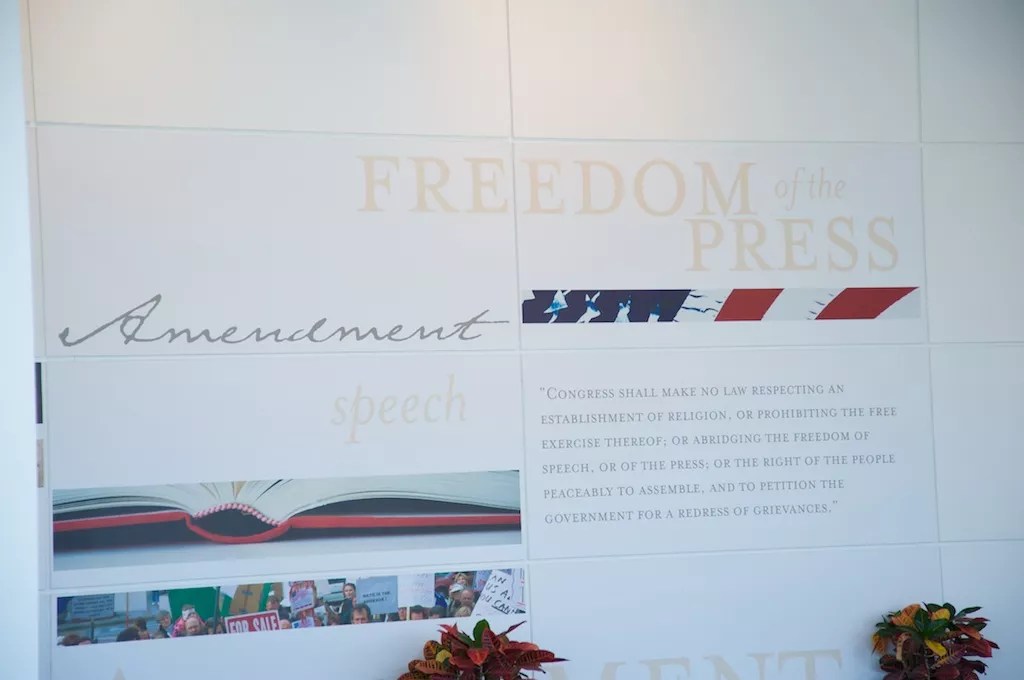 A tribute to freedom of the press in the Denver Post building, as photographed in 2009.
