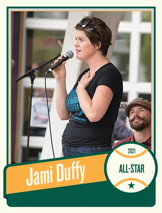 A graduate of the University of Denver — and the first person in her family to complete college — Duffy spent a few years after college working for the Peace Corps in Nicaragua. At 27, she planned to attend law school at DU, but after being denied a full scholarship, she knew she wouldn’t be able to afford the program. Then, around the time of President Barack Obama’s election, she met the members of Flobots through social justice work and eventually took the helm of their nonprofit.