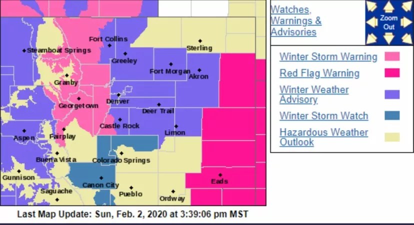 On February 2, Denver’s official Twitter account retweeted this storm map from the National Weather Service’s Boulder branch.