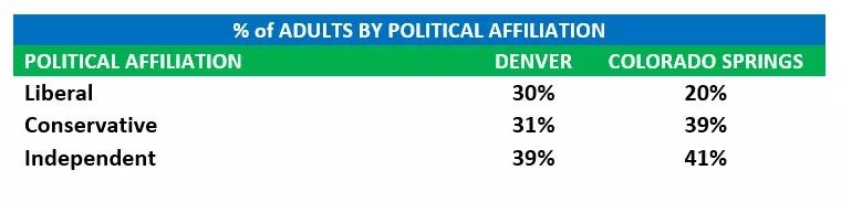 Despite the differences between the two cities, residents of Denver and Colorado Springs share many similarities when it comes to cannabis consumption, according to a new study by Consumer Research Around Cannabis, a research firm that conducts over 100,000 surveys a year on consumer trends. That study found that in both Denver and Colorado Springs, a majority of the residents are in favor of legal pot, and the breakdown by political affiliation is very similar in the two cities.