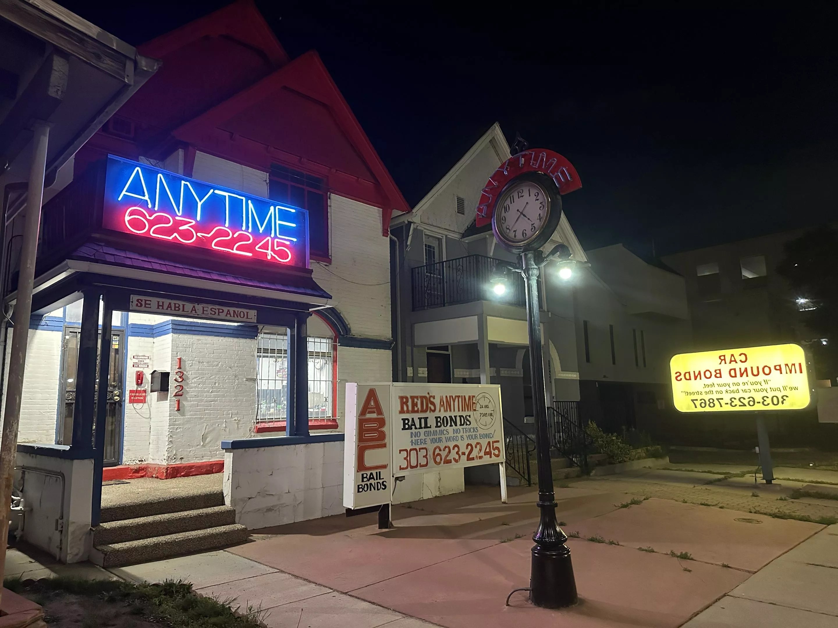Right now, Pacheco is the only bail bondsman still actively using offices on Bail Row for in-person appointments and walk-ins. Westword confirmed with the other remaining businesses — Lucero’s and Red’s Anytime Bail Bonds — that the owners are no longer operating in the area and their offices are now in Brighton. A company on the block advertising “Car Impound Bonds” has a number that’s no longer in service. The properties at 1305 and 1307 Delaware are said to be private residences with people living inside, though it’s unclear whether they’re squatters or tenants paying rent.