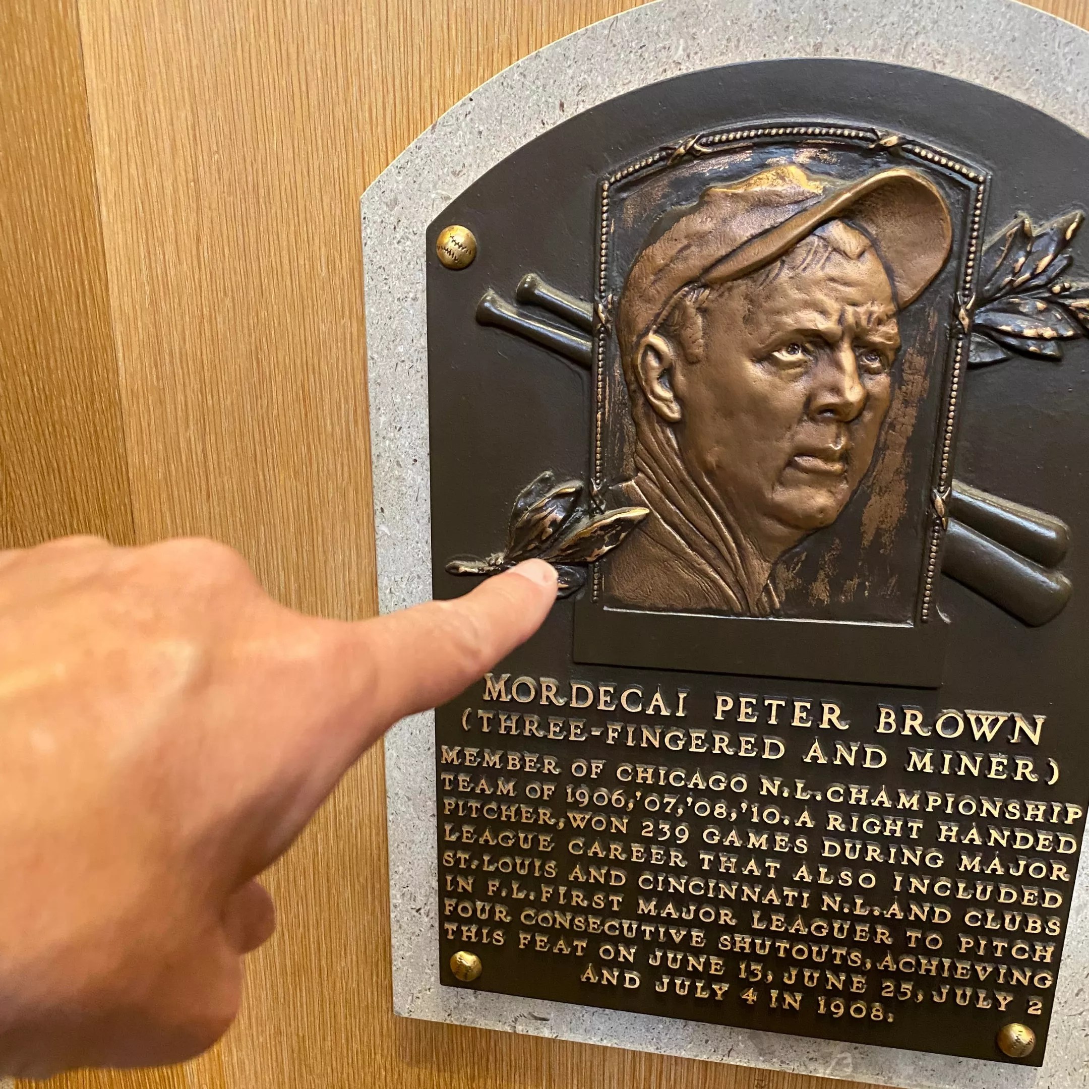 Fortunately, I was more interested in seeing the plaque saluting my only ancestor to achieve anything like fame, as discovered in a genealogical search conducted by my late uncle: Three-Finger Mordecai Brown, who pitched for the Chicago Cubs during the early 1900s.
