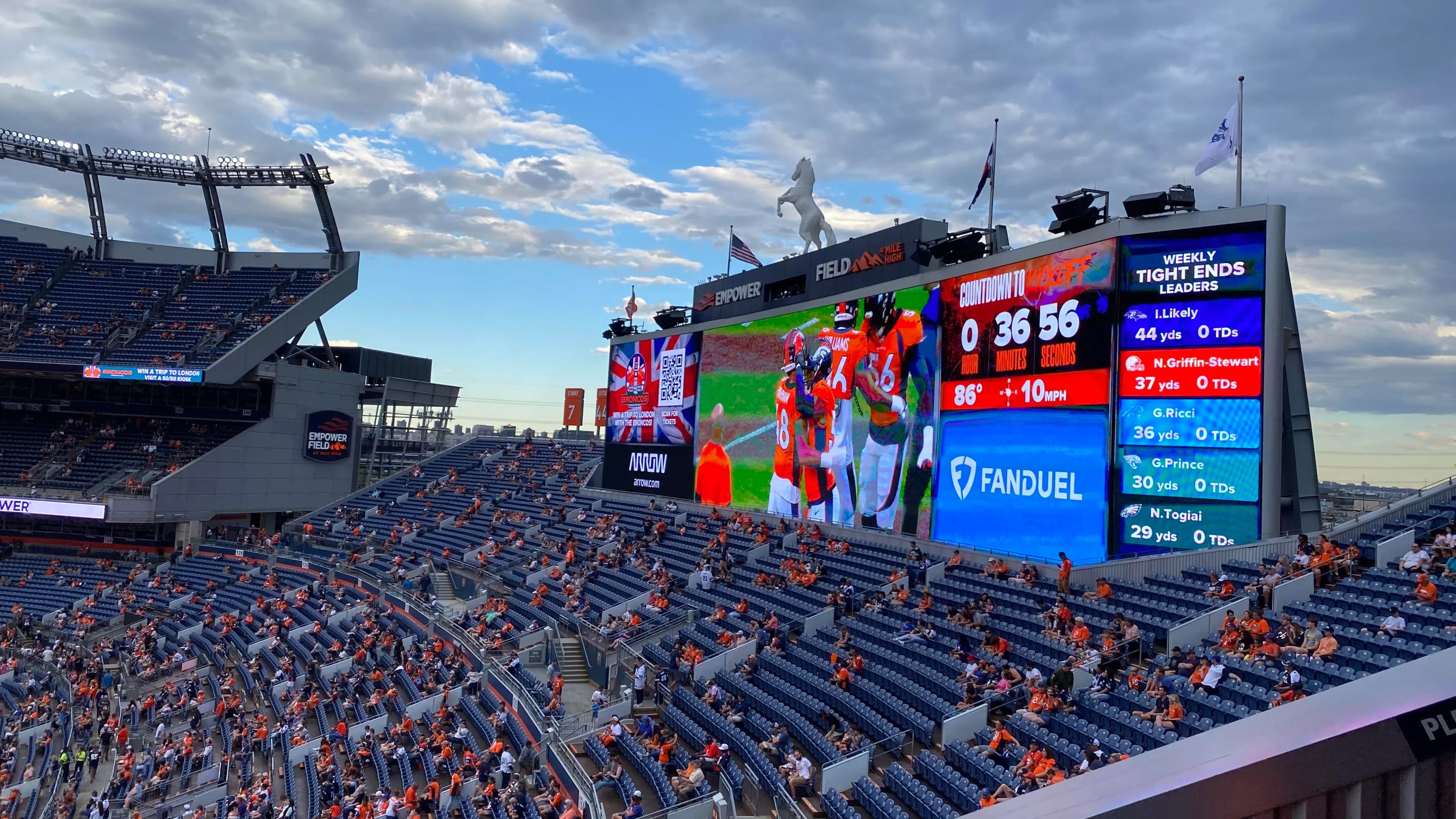 The scoreboard against the backdrop of a gorgeous Colorado sky.