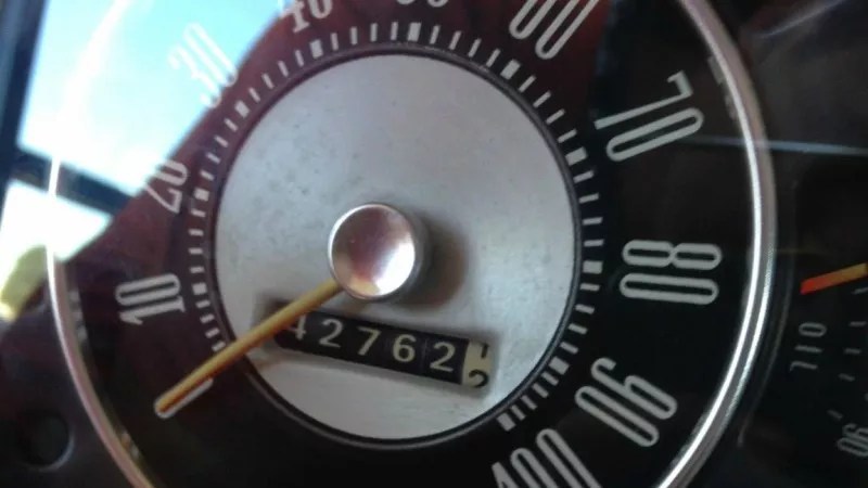 The seats were reupholstered in white vinyl, and the front buckets are equipped with lap belts. New blue carpeting was installed and a roll bar has been added. The white-painted dash houses a modern JVC head unit. 43,479 miles are shown on the five-digit odometer, approximately 600 of which were added under current ownership.