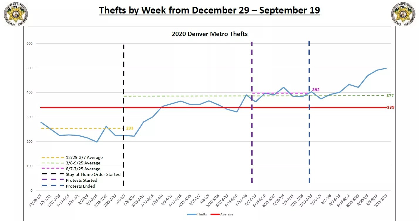 For example, since the rise of the novel coronavirus, motor vehicle theft in the Denver metro area has spiked, too. In a serious way.