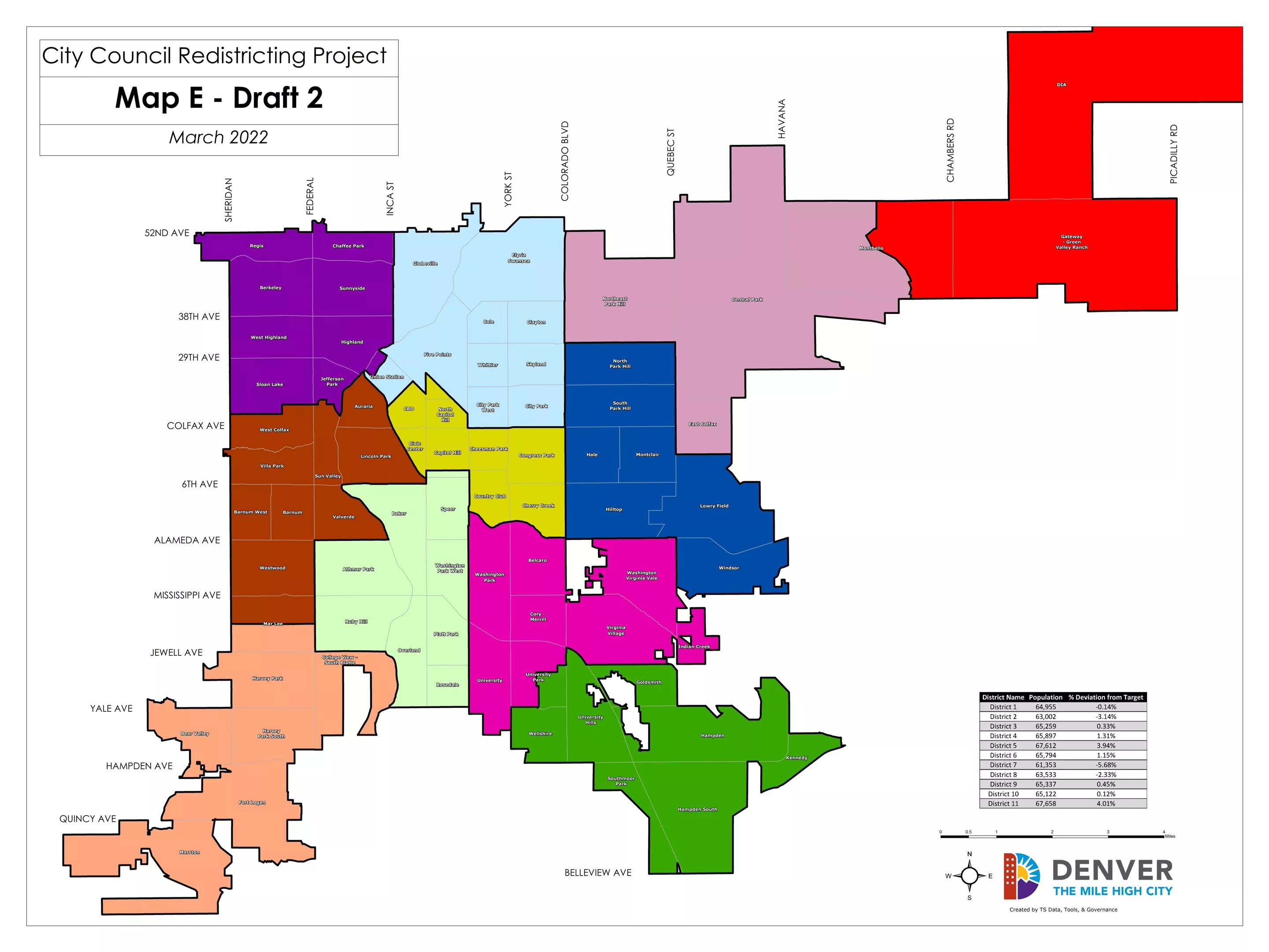 On March 14, Denver City Council voted to send two potential maps forward as part of the redistricting process. Council will need to settle on a single map by March 29; it will take effect in time for the April 2023 municipal elections.