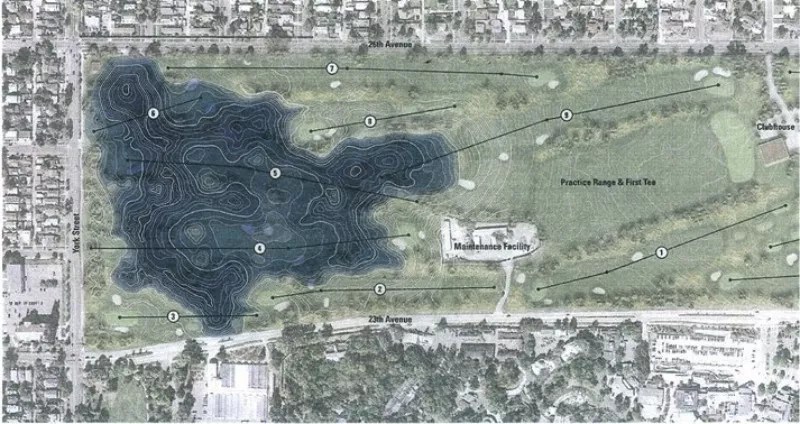 Plans call for regrading City Park Golf Course so that its western third would be inundated in a 100-year flood.