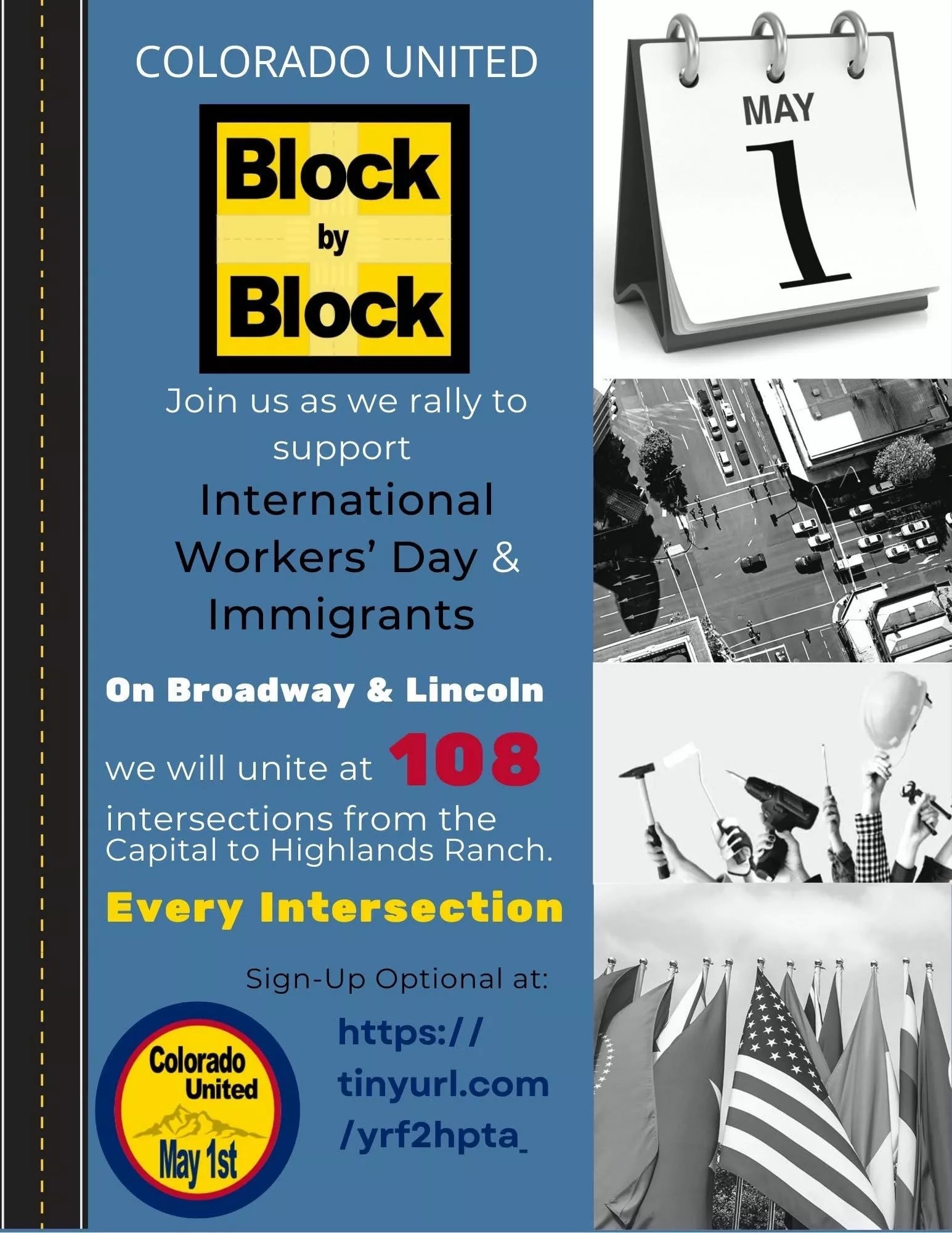 The lead organizer for the main May 1 protest in Denver is the Aurora Unidos Community Service Organization, which holds a permit for a 3 p.m. gathering, too. That’s for the more traditional May Day protet.
