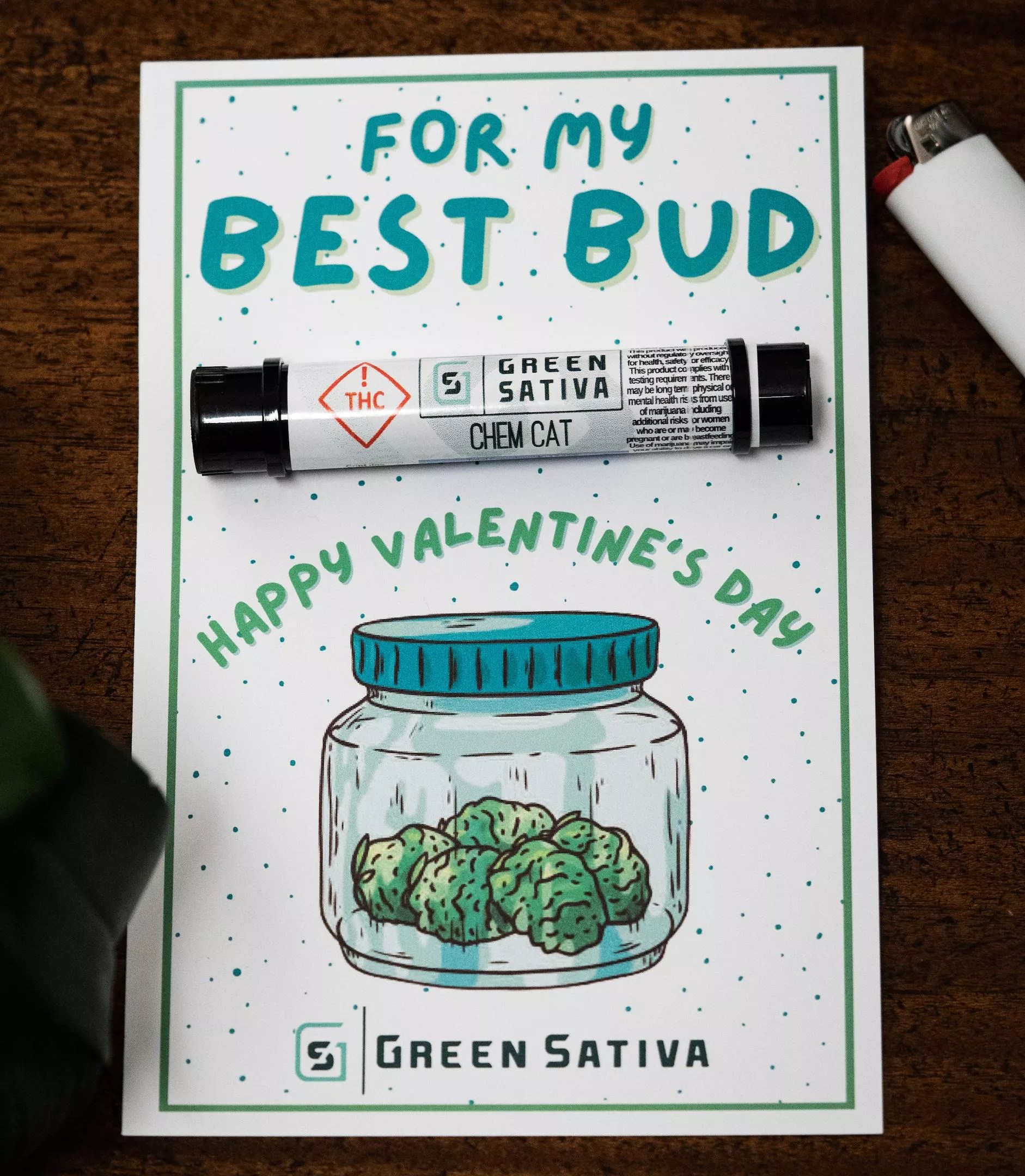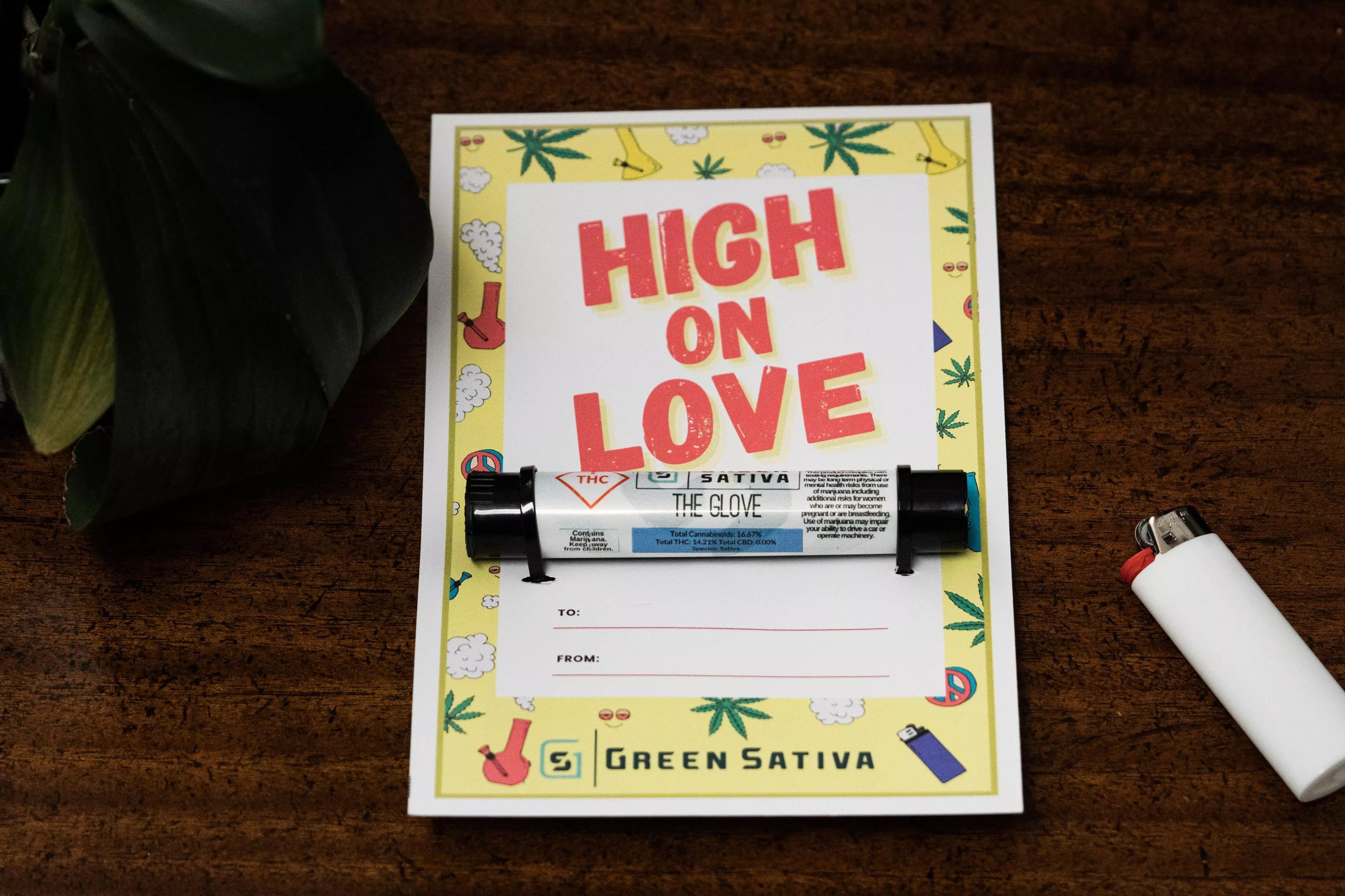 Green Sativa, a Denver area dispensary chain and growing operation, is now selling Valentine’s Day cards with one-gram joints. The cards are made for lovers, friends “and even your mother,” according to Green Sativa operational manager Frances Comeau. The idea for the cards, dubbed Love Notes, was first hatched last year and became an immediate success, she says.