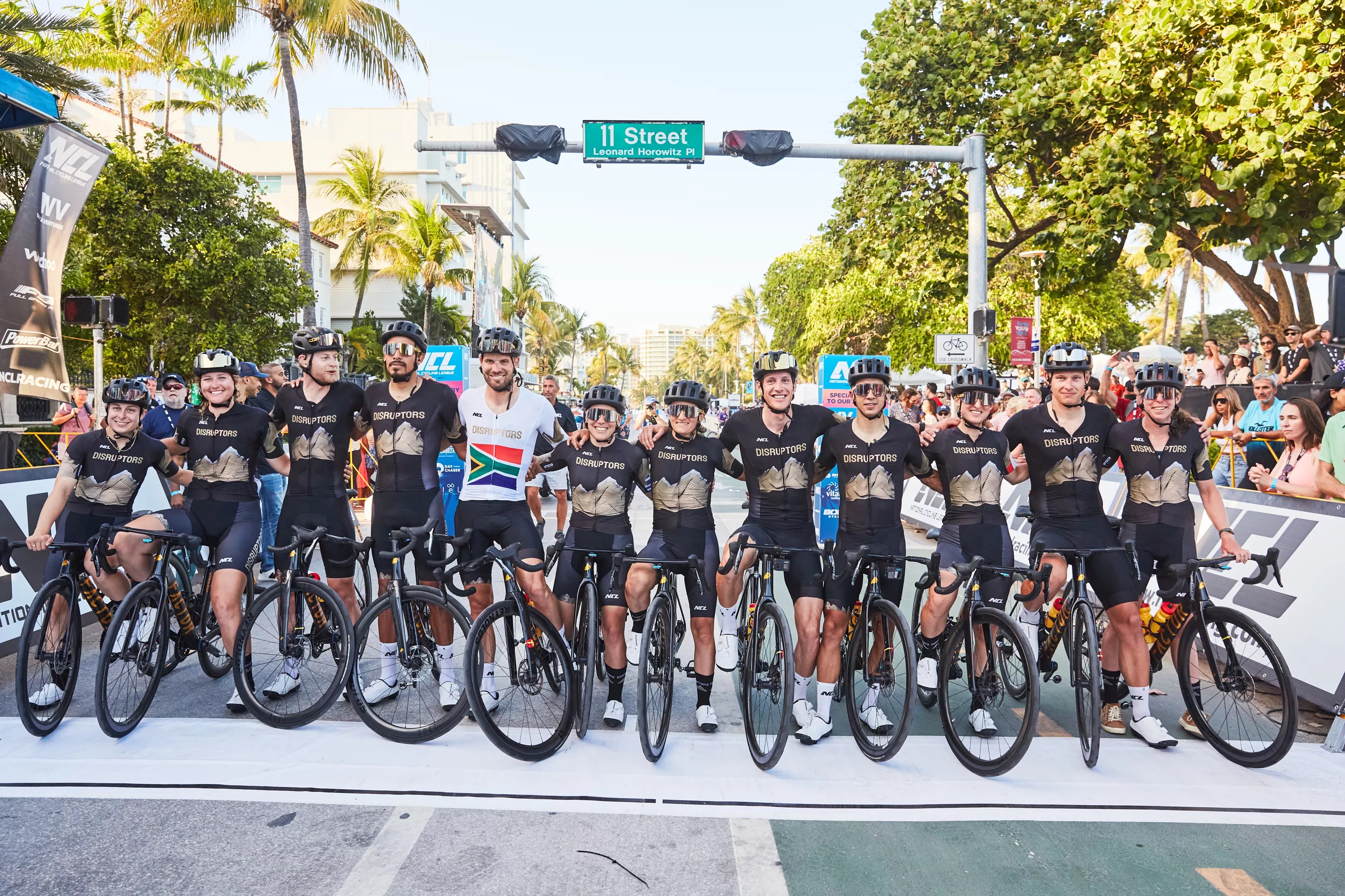 Typically in cycling, only one person wins a race — despite the fact that cyclists race on teams and help each other for the duration of the event. By contrast, in Miami, the Disruptors all rode a final lap around the track together, passing champagne around on their bikes.