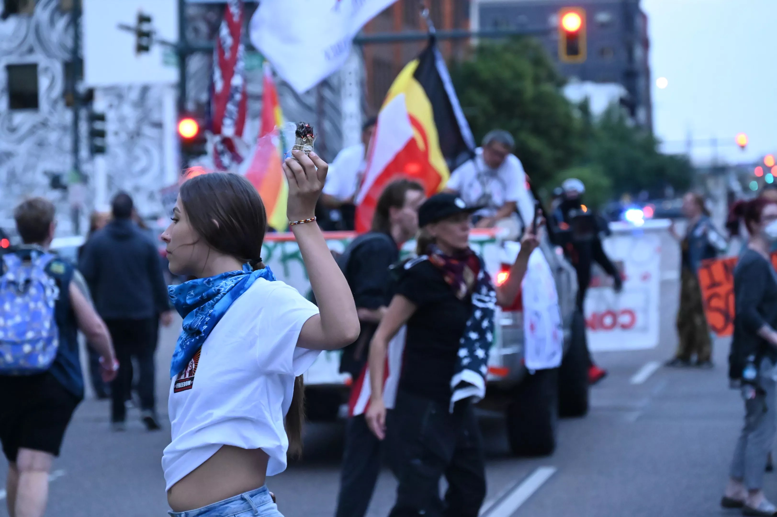 At the Good Trouble Lives On protest, about fifty people began marching down Lincoln Street at 7:30 p.m., circling back on Broadway and never going south of 11th Avenue. When they returned to the Capitol, they burned an American flag on Lincoln. After that, they and other protesters who’d hung around Lincoln Veterans Memorial Park called it a night.