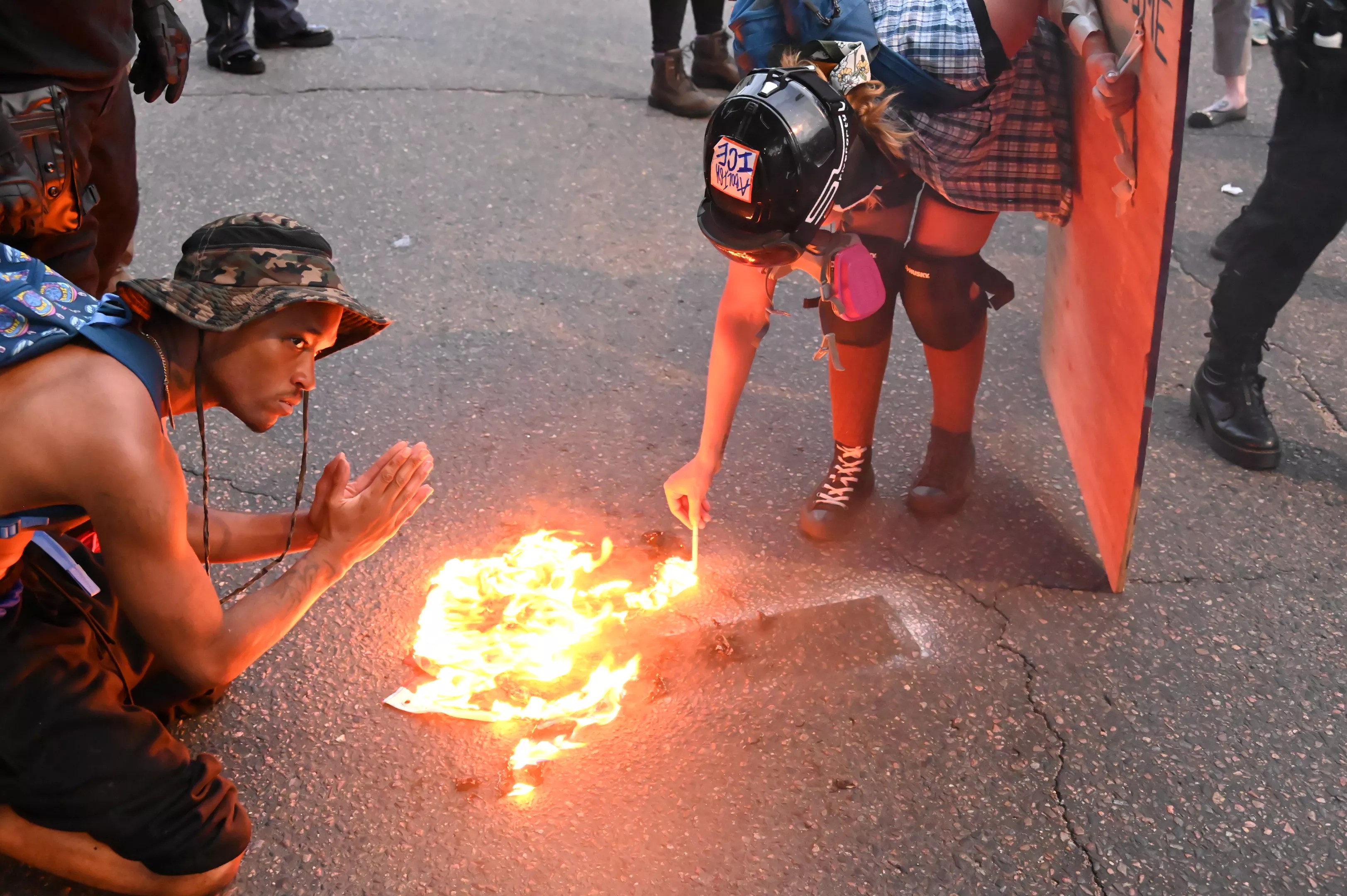 Before protesters called it a night, they burned an American flag on Lincoln Street.