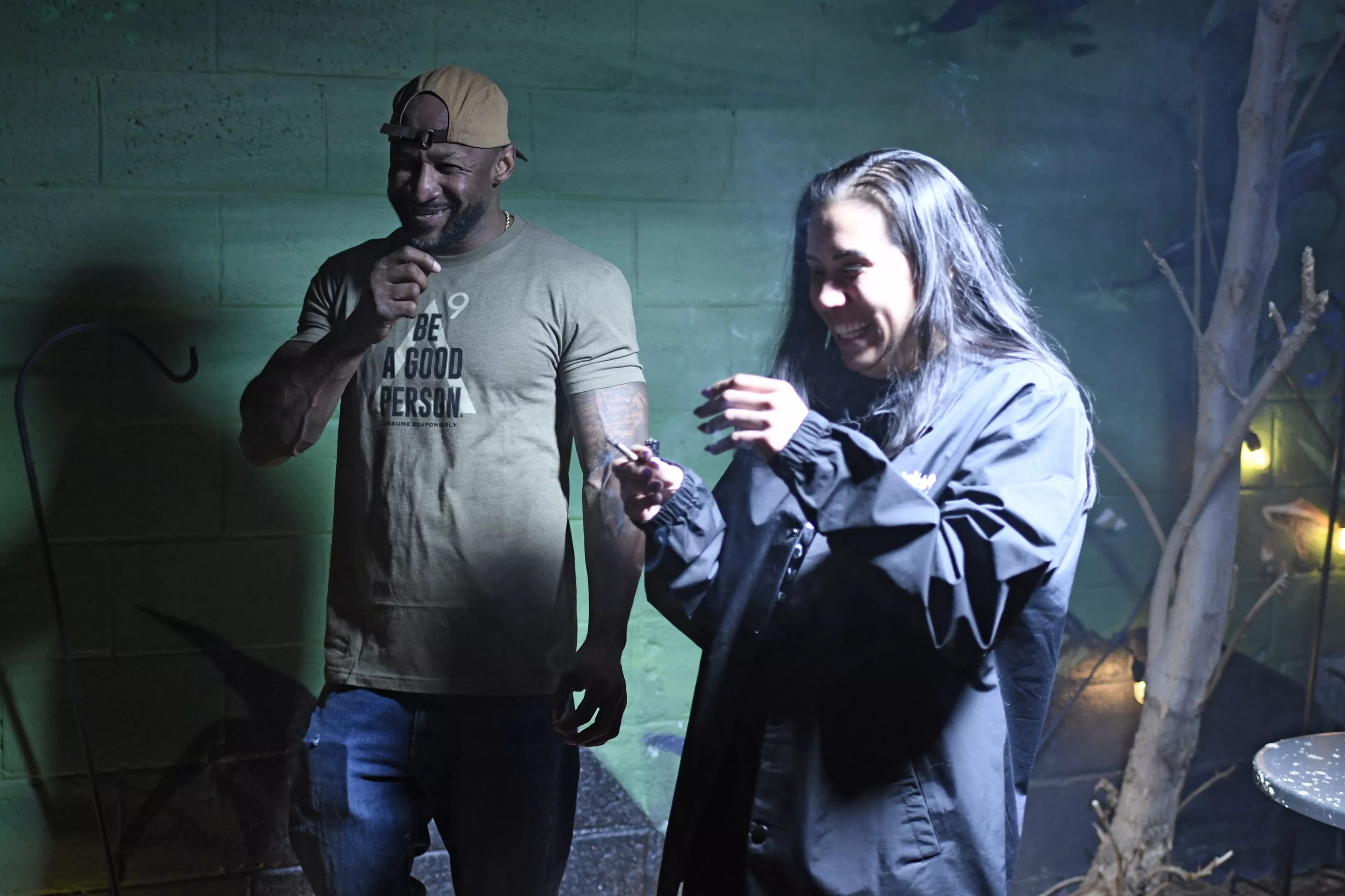 Benjamin and a friend laugh over a joint at Tetra.