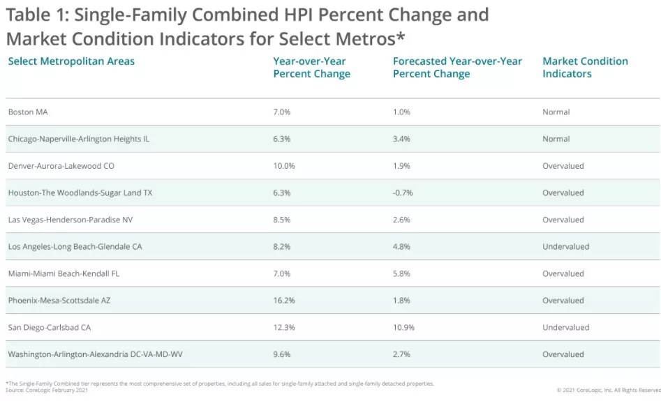 Despite the 10 percent increase, the new figures show a prediction of a 1.9 percent rise through February 2021 — lower than a lot of other major metros. Why does CoreLogic predict just a 1.9 percent year-over-year percentage change for the market?