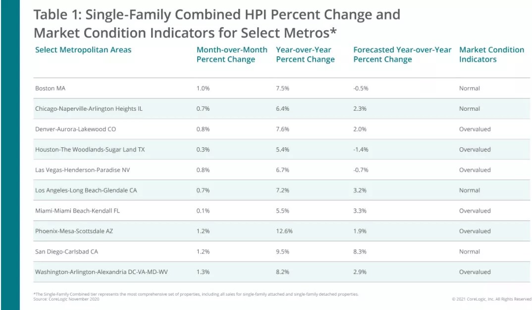 “The CoreLogic HPI for the U.S. rose 8.2 percent in the twelve months ending November 2020, compared with a rise of 7.6 percent for the Denver metropolitan area during the same period,” Nothaft notes. “Thus, Denver was similar to the national trend over the past year.”