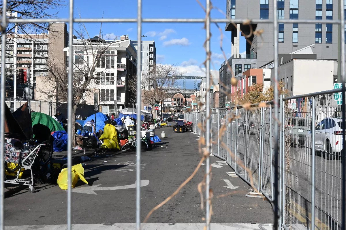 The City of Denver put up fencing around the Ballpark District encampment as they swept residents and put them into transitional housing on Thursday, December 7.