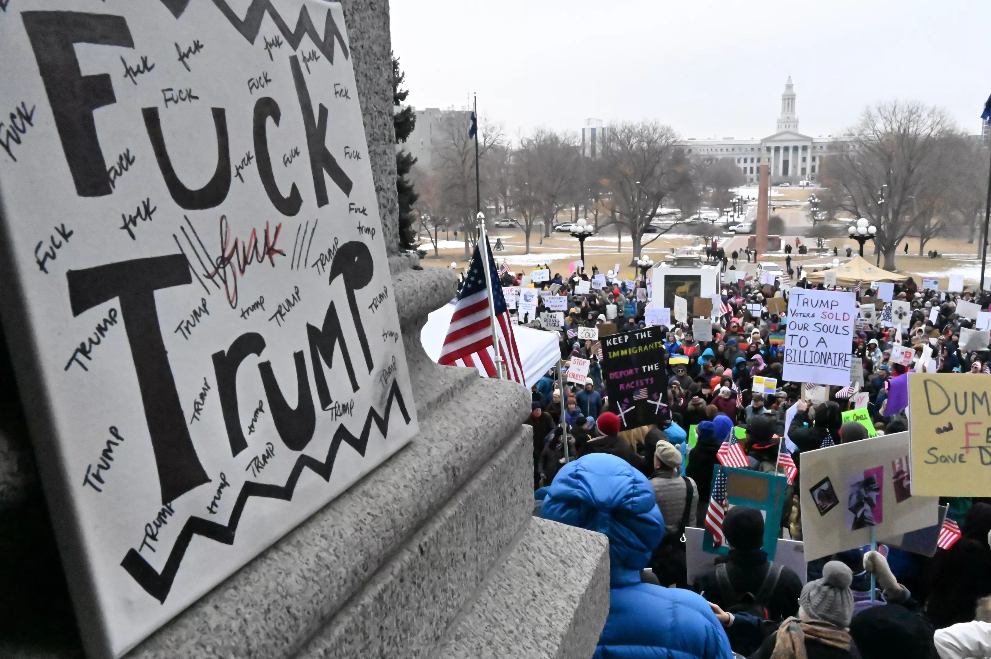 Protesters continue showing up in large numbers to the Colorado State Capitol to oppose President Donald Trump’s presidency.
