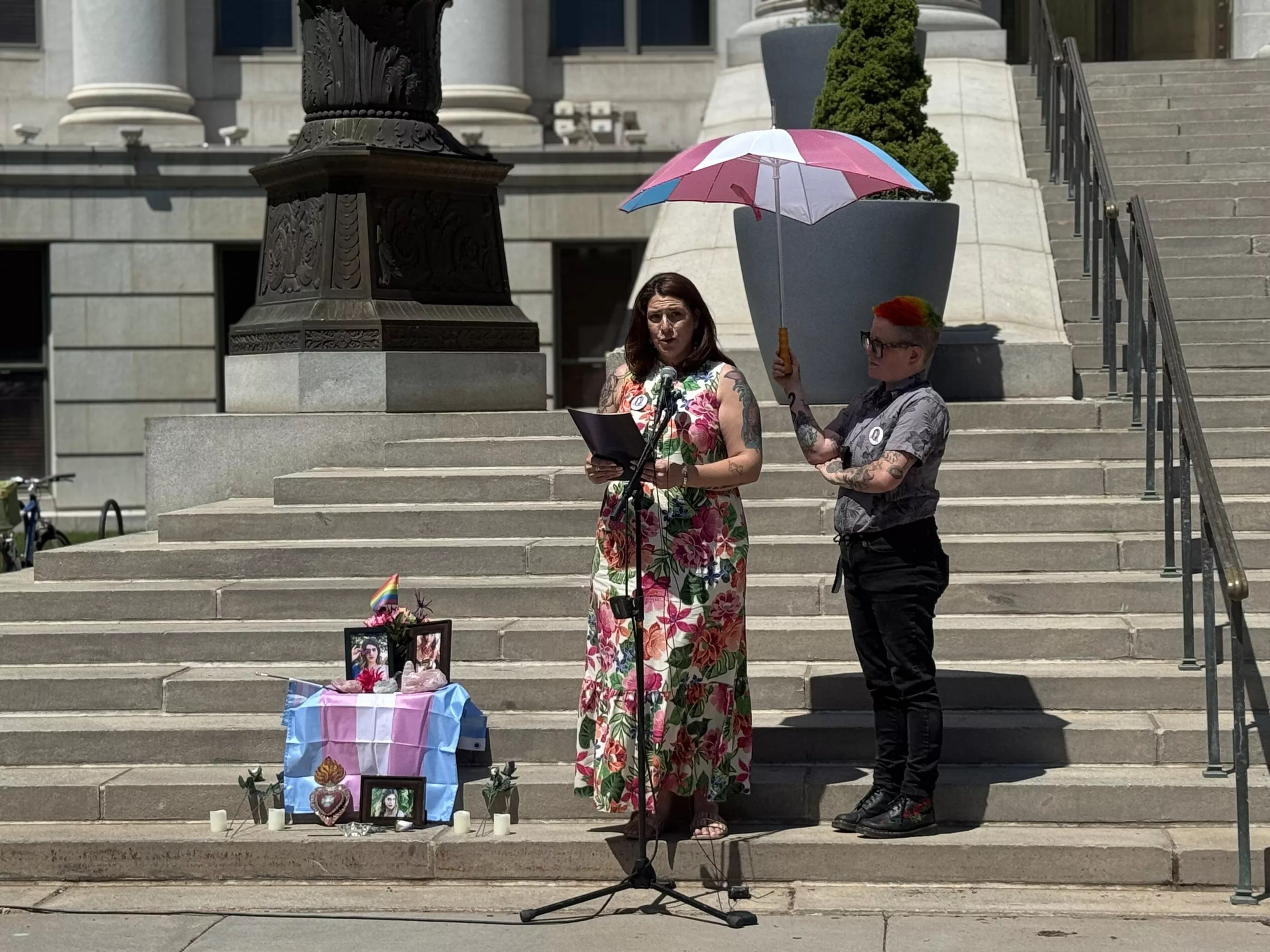 State Representative Brianna Titone, the first openly transgender state legislator elected in Colorado and the fourth in the United States, joined activist Z Williams to read a written statement from Gratton-Camis.