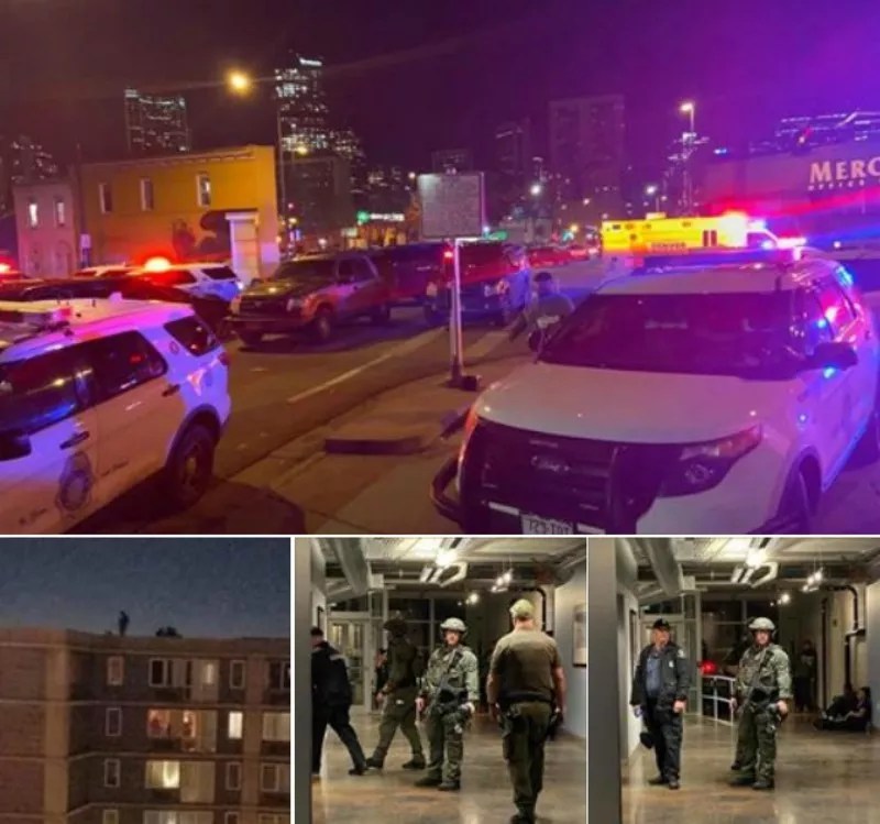 After 6 p.m. on Friday, December 6, according to the DPD report, officers were dispatched to the ninth floor of an apartment complex at 2330 Broadway after multiple callers to DPD dispatch said that a man “was going up and down the hall threatening that he was going to kill people…slamming the doors over and over. He was described as a black male, thirties, five-nine and thin.”