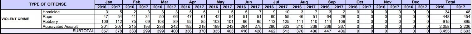 Through the first three quarters of 2017, violent crime as a whole in Denver is up, with the most worrisome leap coming in the homicide category. And while a significant number of neighborhoods in the city have registered few violent offenses, five sport totals in excess of 100 combined episodes of murder, robbery and aggravated assault.