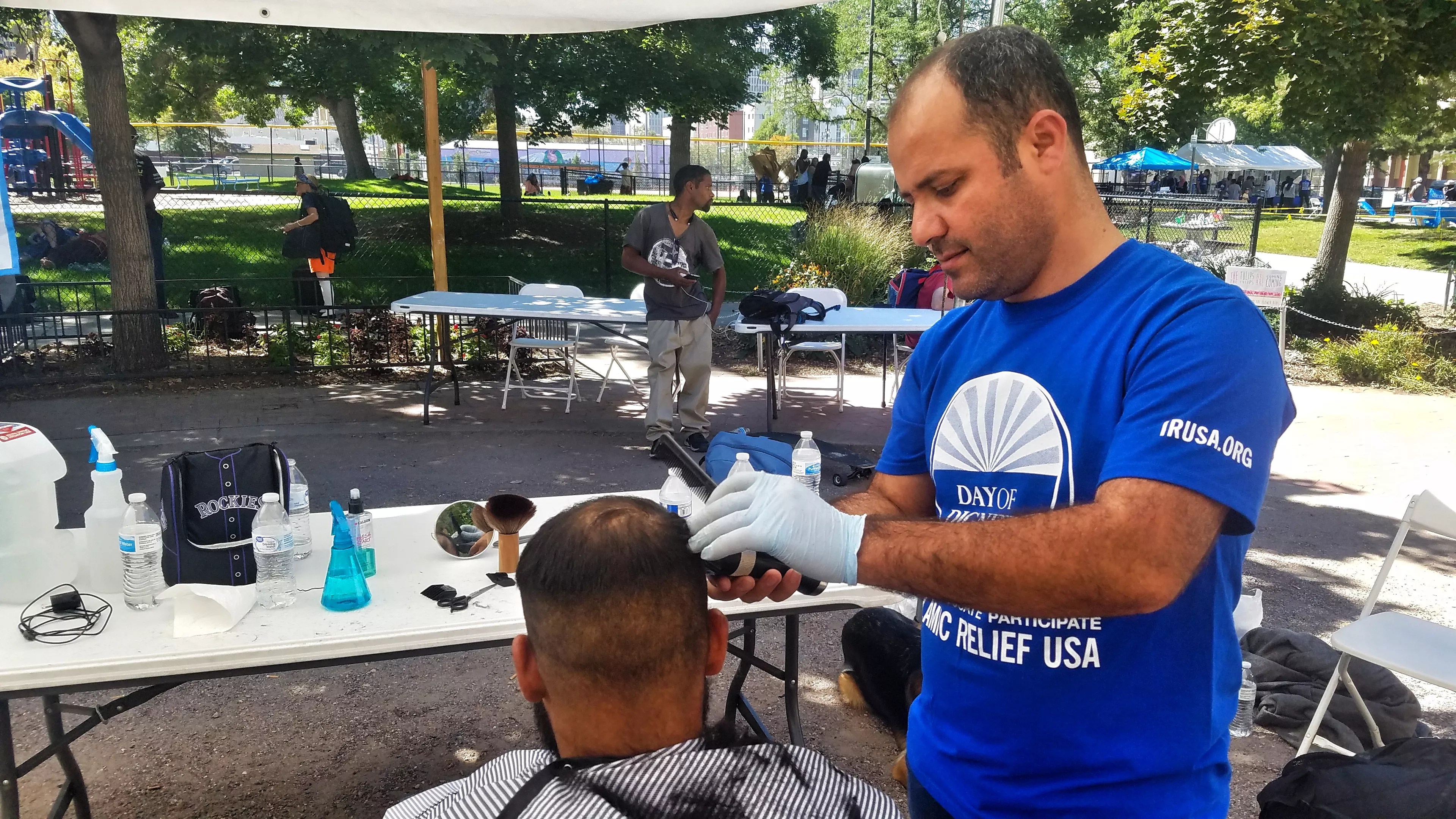 The haircut station was the biggest hit for participants, eighty of whom walked away with new dos. Mahmoud Bali, one of the barbers who cut hair throughout the day, has worked at a local barber shop since coming to the U.S. as a Syrian refugee over a year and a half ago from Turkey. He now lives in the Denver area with his wife and three kids.
