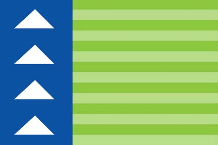 Valverde: “This near westside Denver neighborhood’s name translates to “green valley” from Spanish. Founded in 1899, the early developers saw the beautiful area buffering the South Platte River as a valley of flourishing natural vegetation and trees. The same river which gave the neighborhood its name also almost led to its destruction in the flood of 1965, when nearly 3,000 buildings in the neighborhood were damaged or destroyed. The river and natural topography are reflected in the design of the flag.”