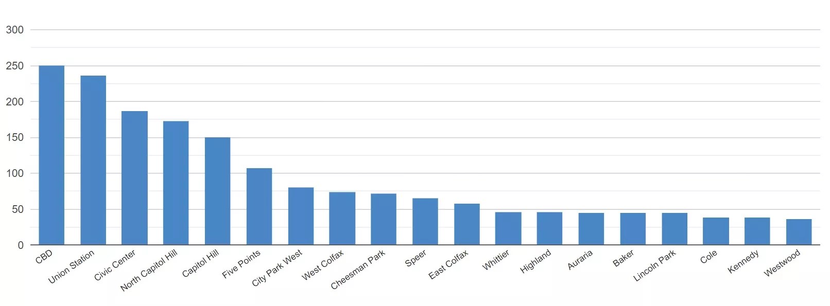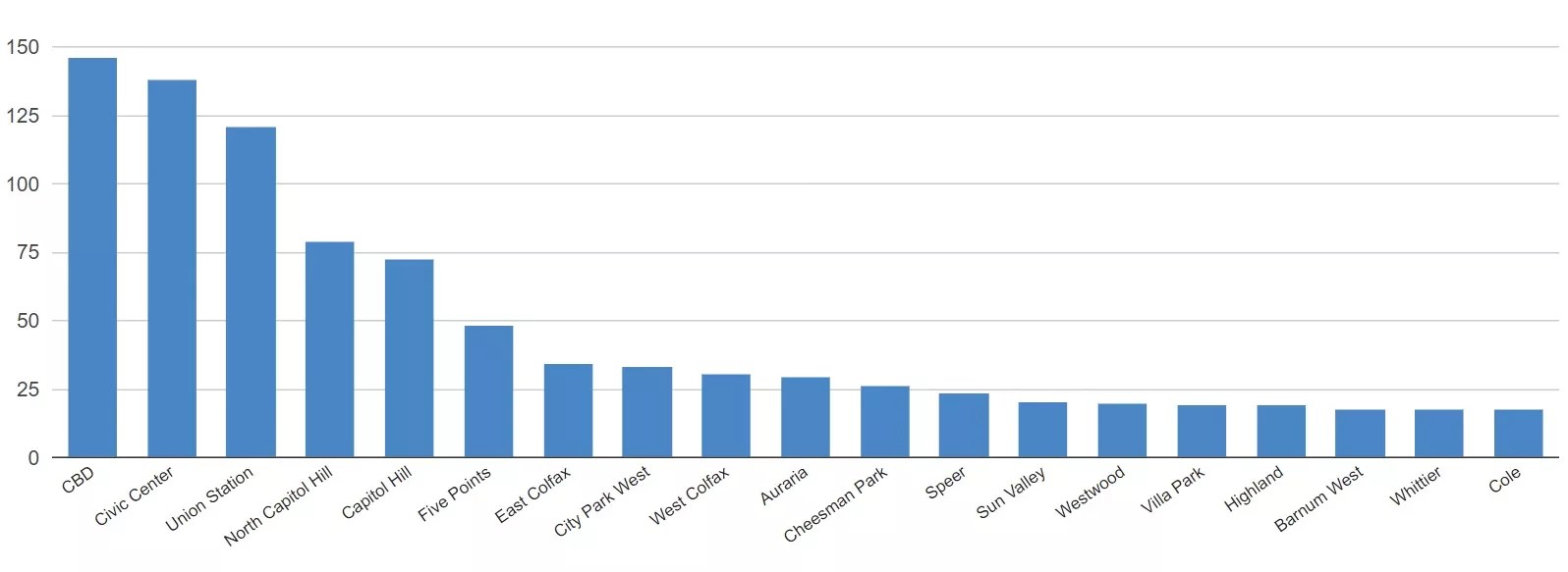 Continue to see violent crime, property crime, other crime and overall crime data in Denver from September 19 to October 3 for the nineteen top neighborhoods in each category: